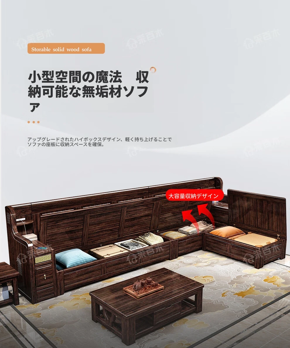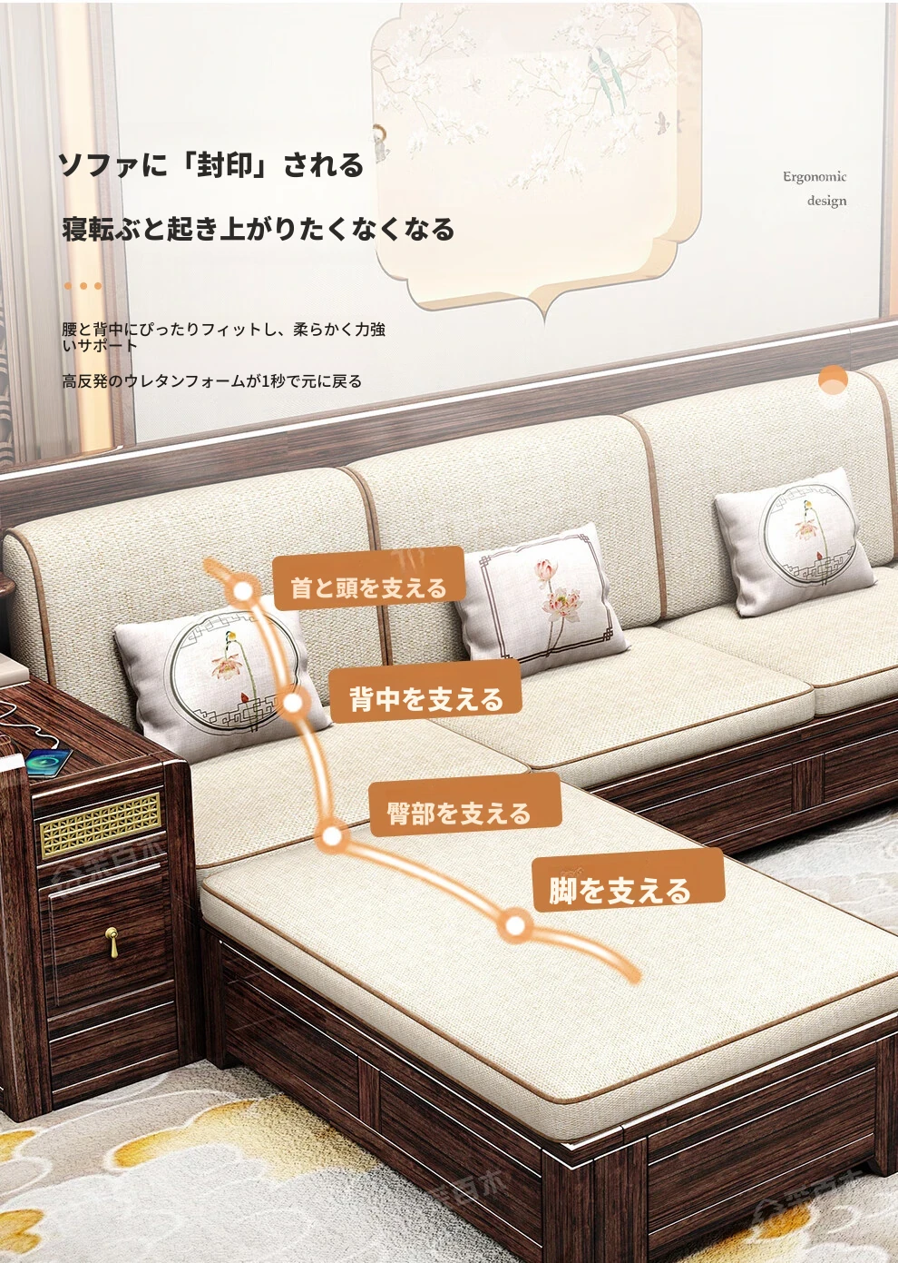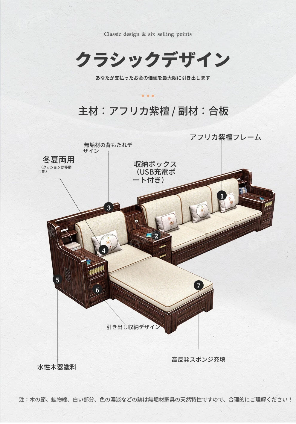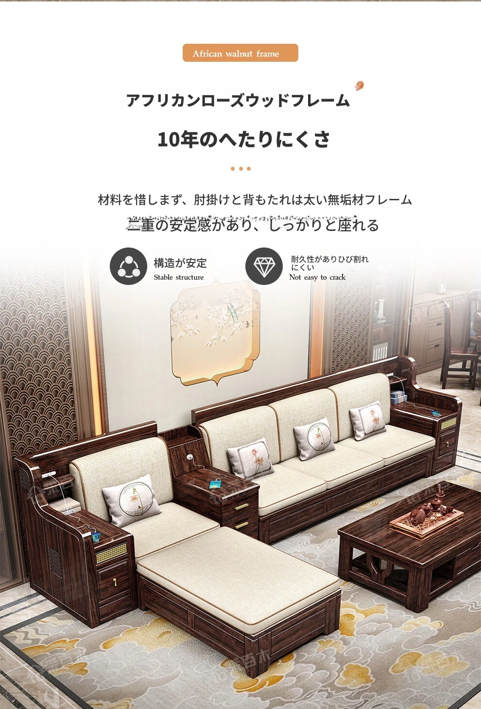 紫金檀木の実木製ソファセット - 冬も夏も使える収納付きの貴妃ソファ!高級感溢れる中国風デザインで、別荘や家庭のリビングにぴったり。居心地良く、スタイリッシュな空間を演出します。