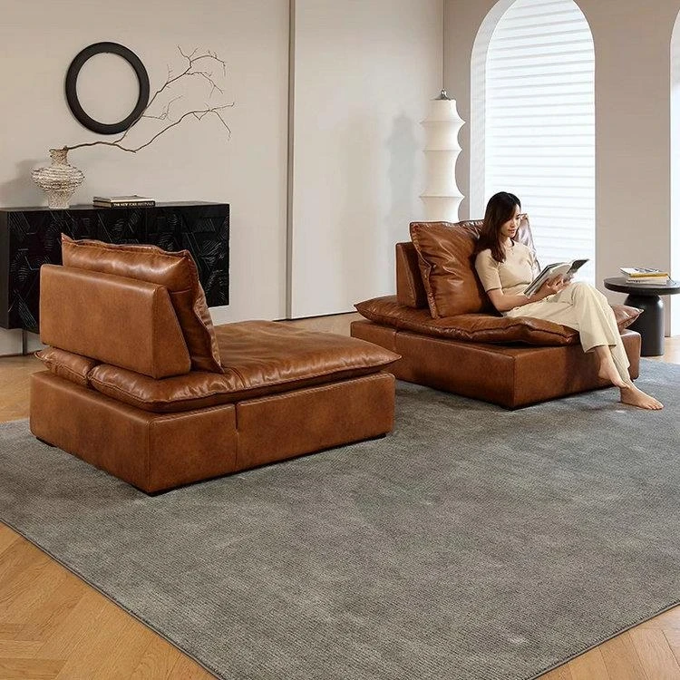 移動可能な背もたれ付き!デザイナーズの猫爪対策レザー、オイルワックス仕上げのヴィンテージ風アームレス一人掛けソファ。おしゃれなリビングにぴったり!リラックスしたい時に最適なアイテムです。