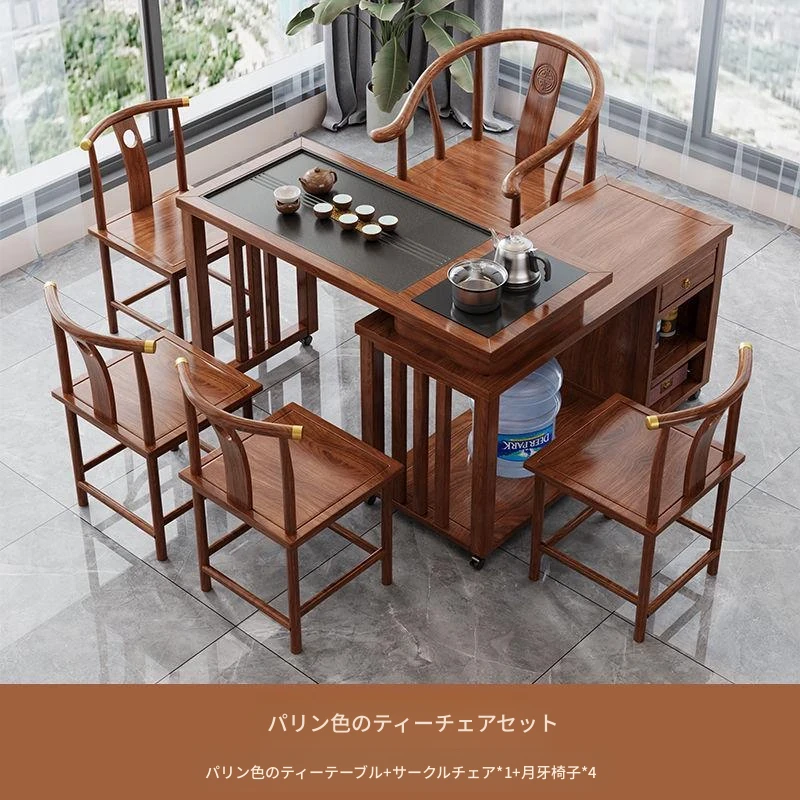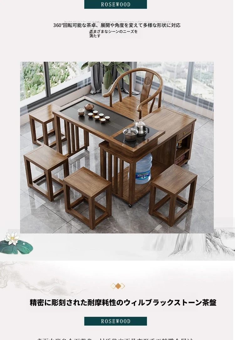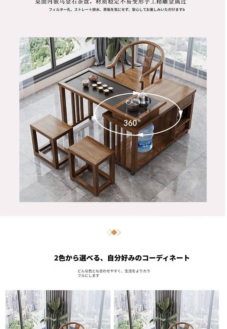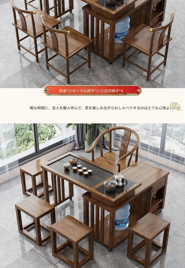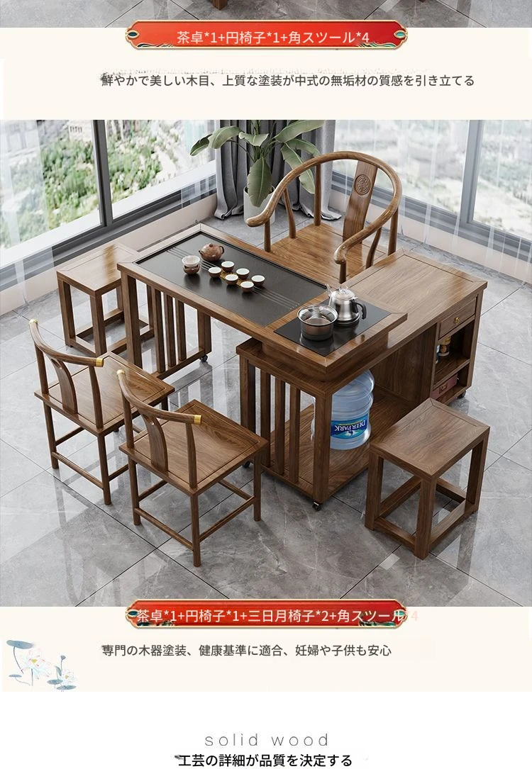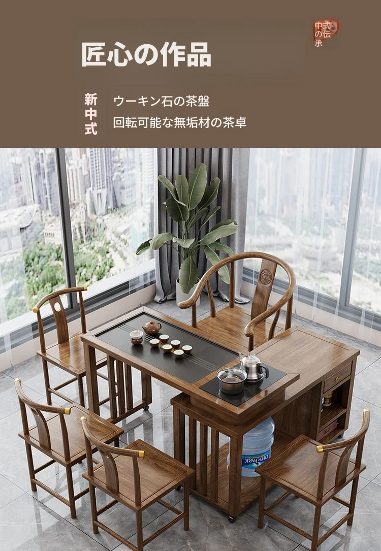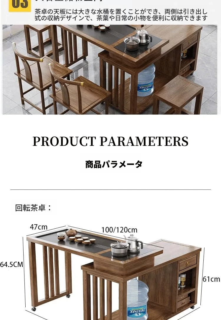 高品質の無垢材製回転式ティーテーブル - バルコニーや小型住宅に最適!1mまたは1.2mのサイズで、移動も簡単なテーブル&チェアセット。ゴムの木を使用し、お湯を沸かす機能も搭載。おしゃれで便利なティータイムを楽しもう!