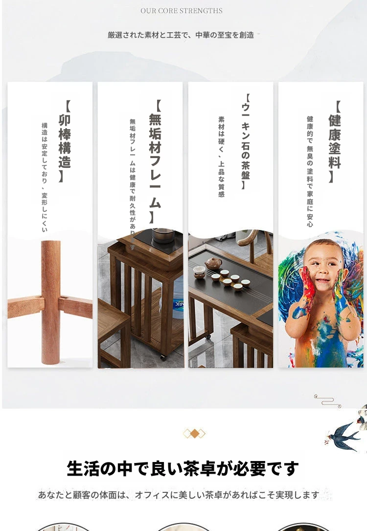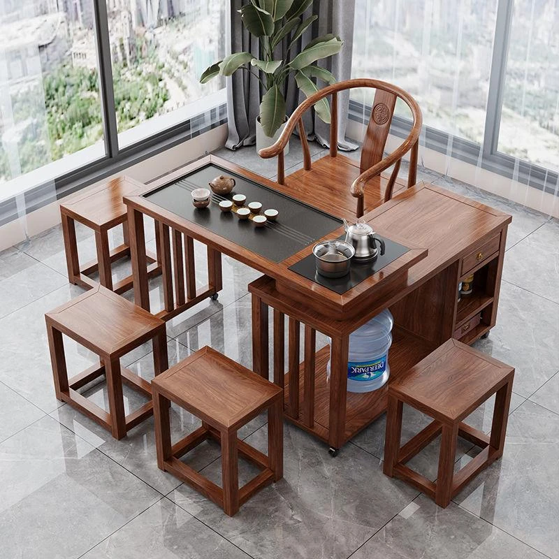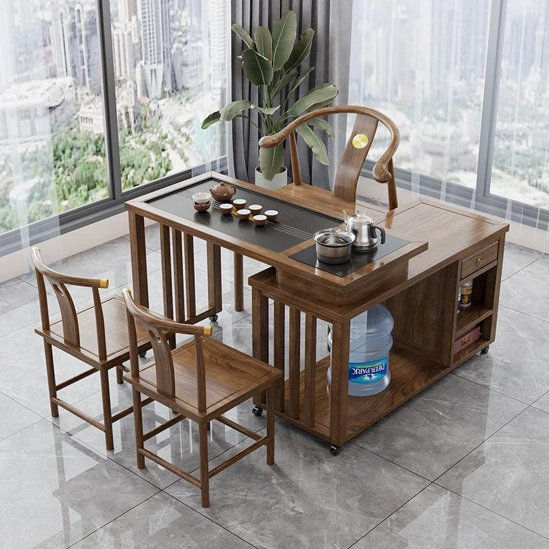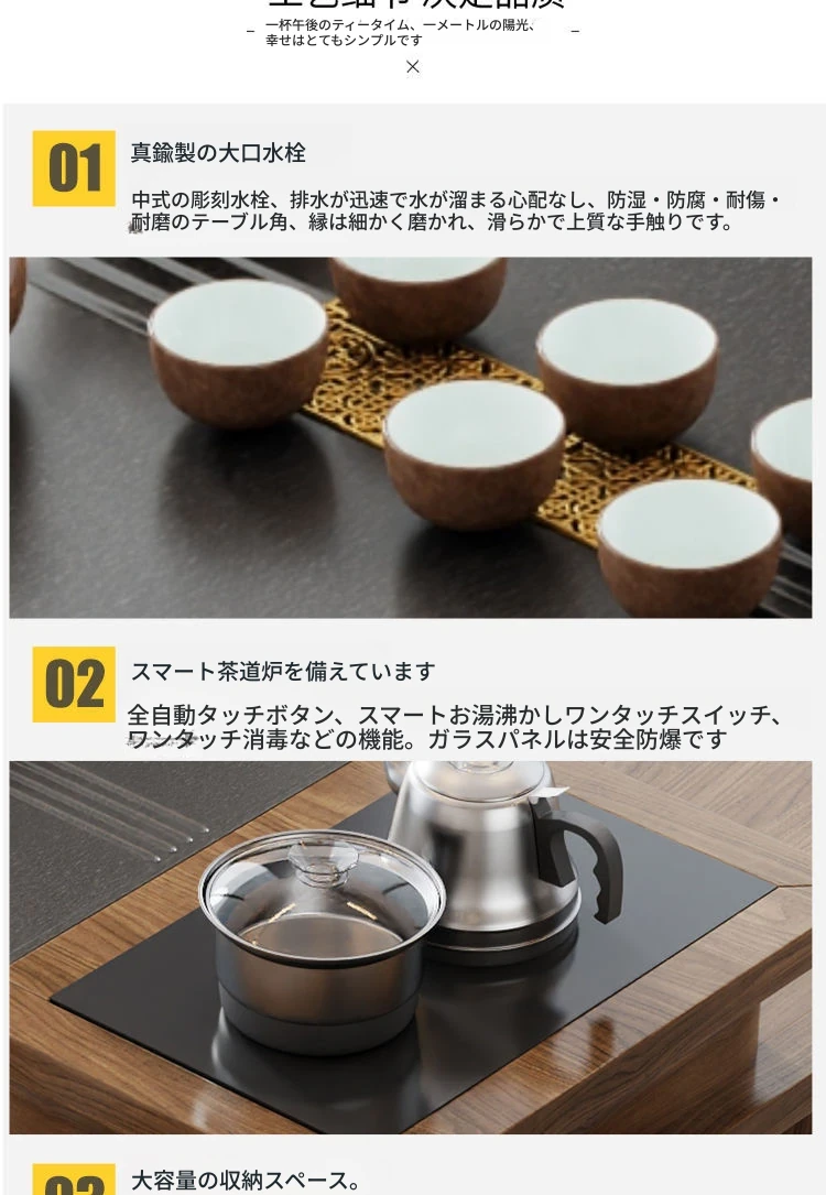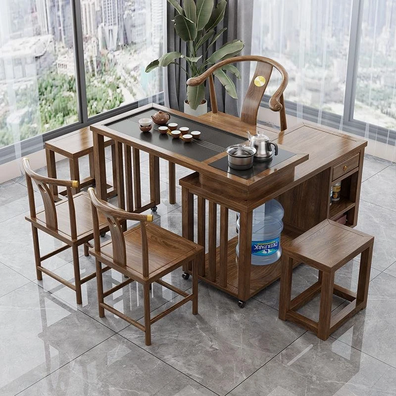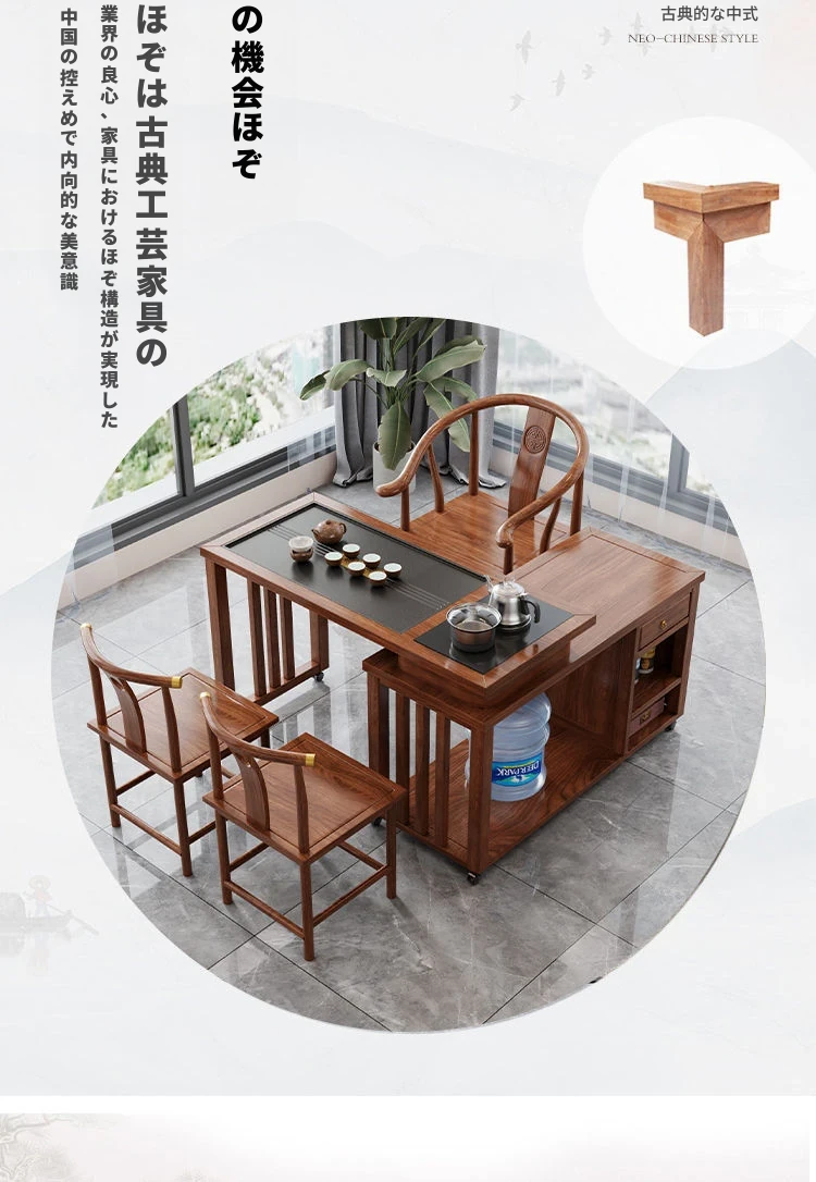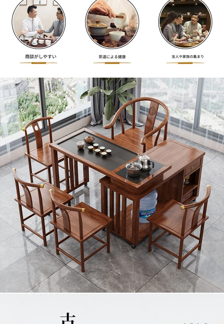 高品質の無垢材製回転式ティーテーブル - バルコニーや小型住宅に最適!1mまたは1.2mのサイズで、移動も簡単なテーブル&チェアセット。ゴムの木を使用し、お湯を沸かす機能も搭載。おしゃれで便利なティータイムを楽しもう!