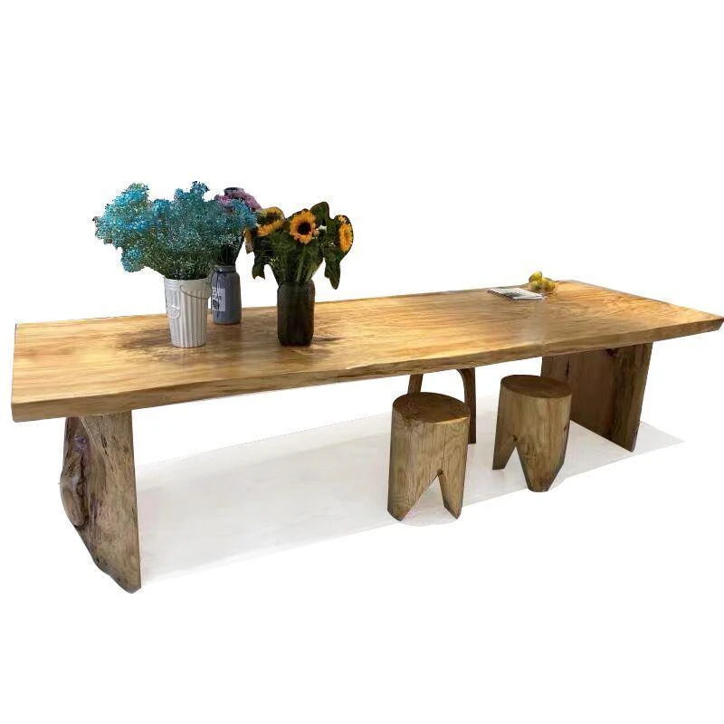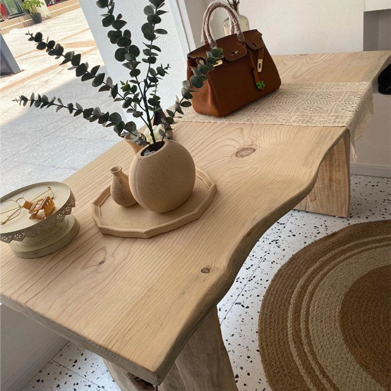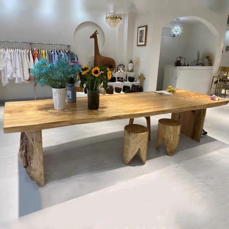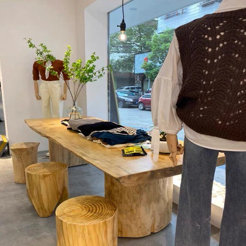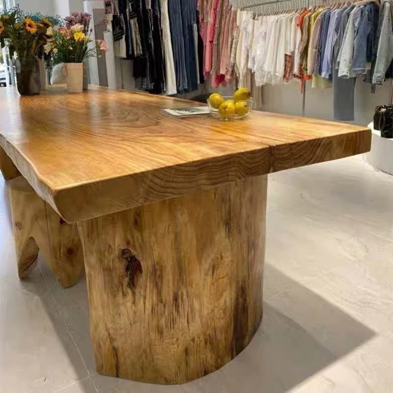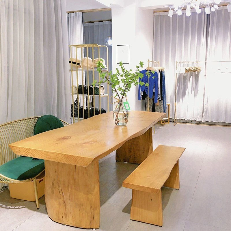 天然木材使用!オシャレなレディース服飾店用展示テーブル - 中島スタイルの流れるようなデザイン、長方形の大板テーブル。ティーテーブルにも最適!インスタ映え間違いなしの人気商品!