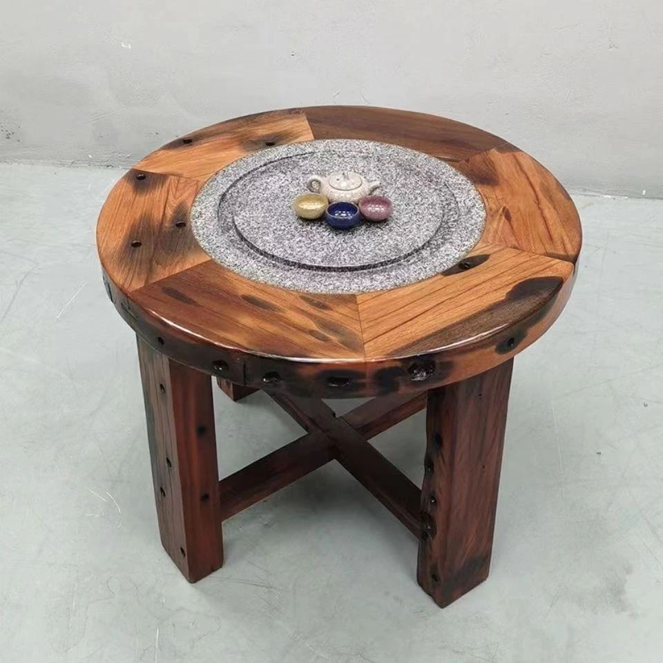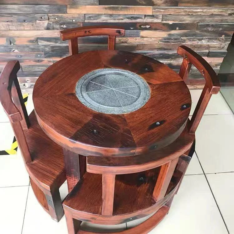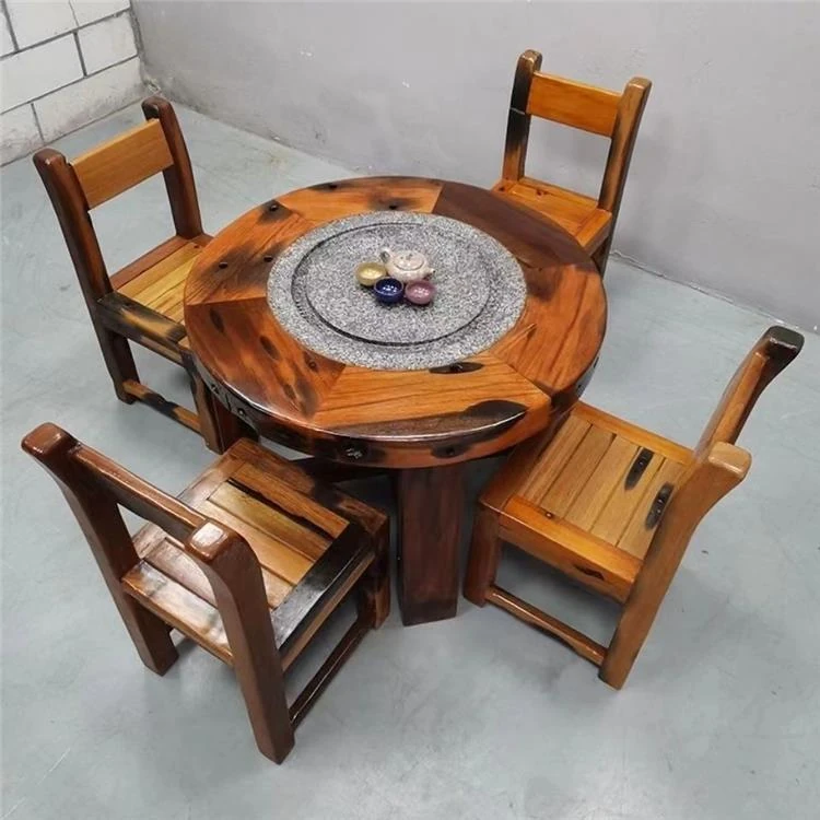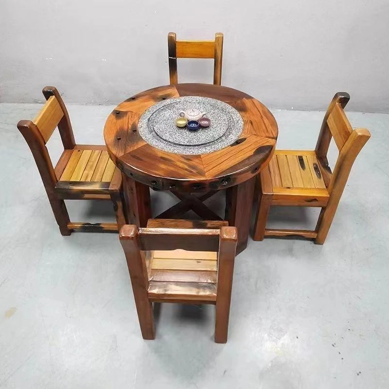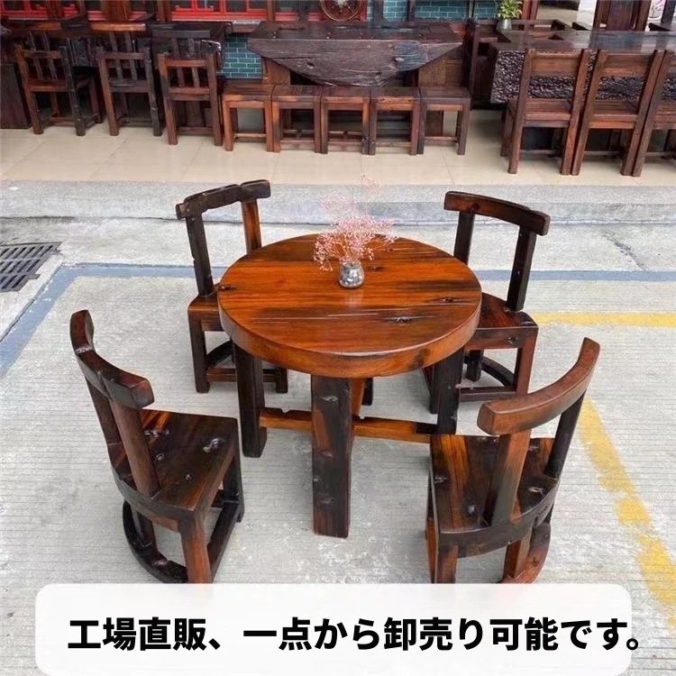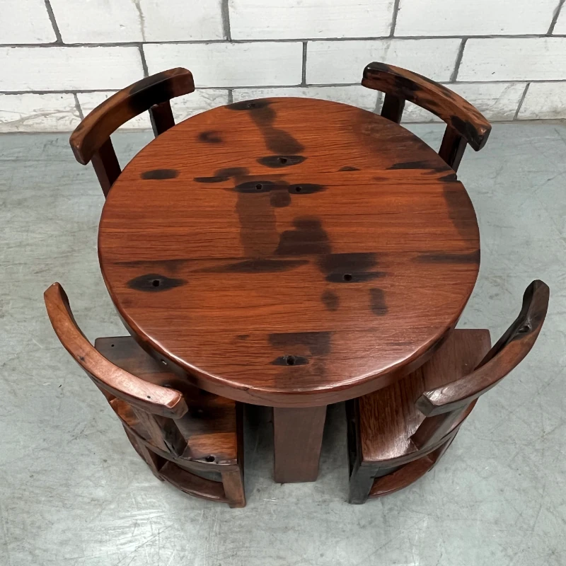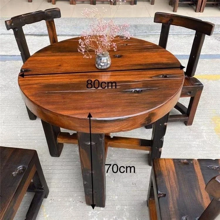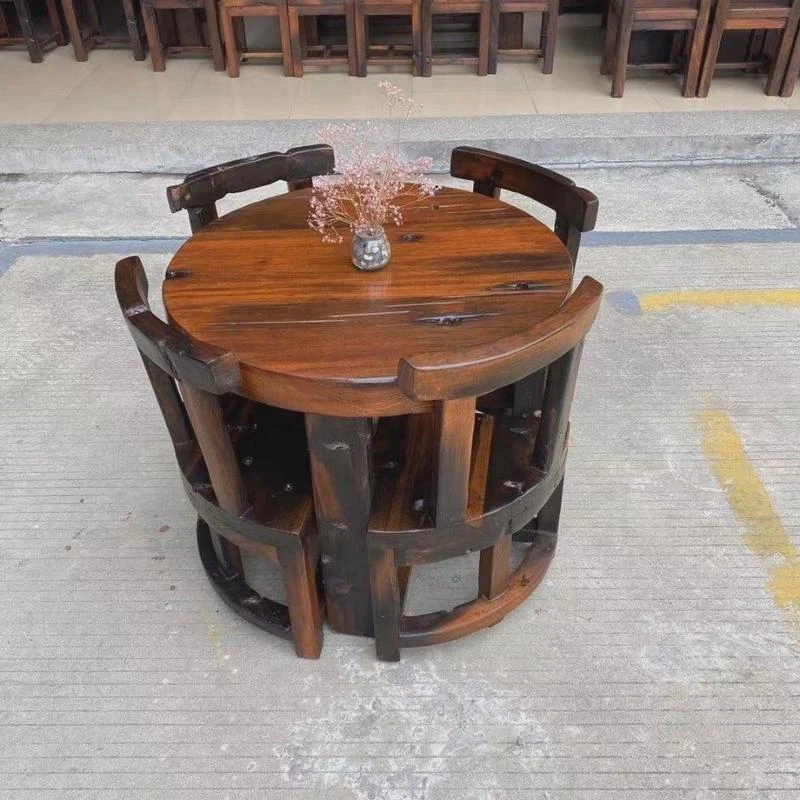 老船木製の茶卓椅子セット - 家庭用中華スタイルの丸型ダイニングテーブル、コンパクトな食事スペースにぴったり、バルコニーやレストランに最適なティーテーブル!高級感あふれるデザインで、特別なひとときを演出します。