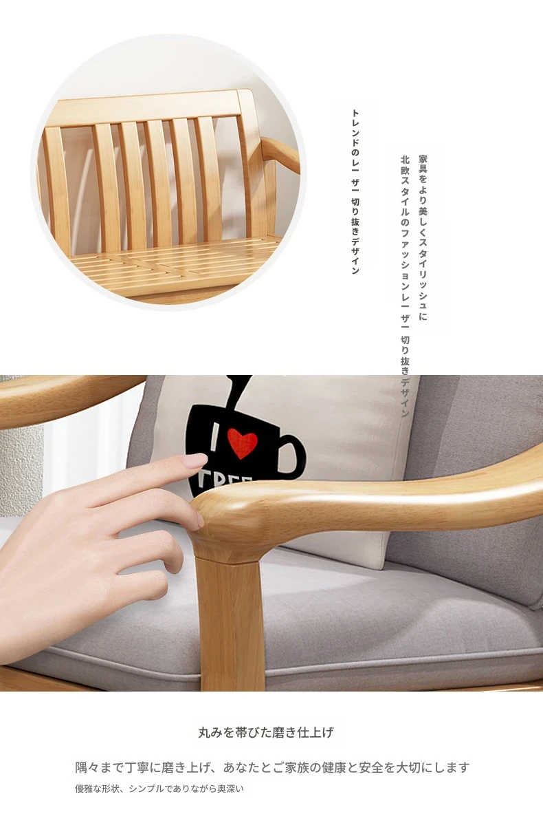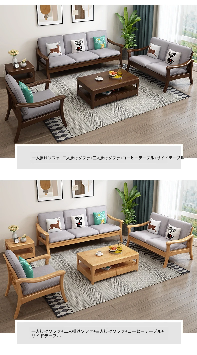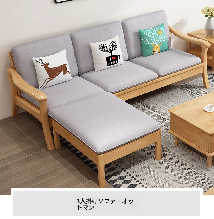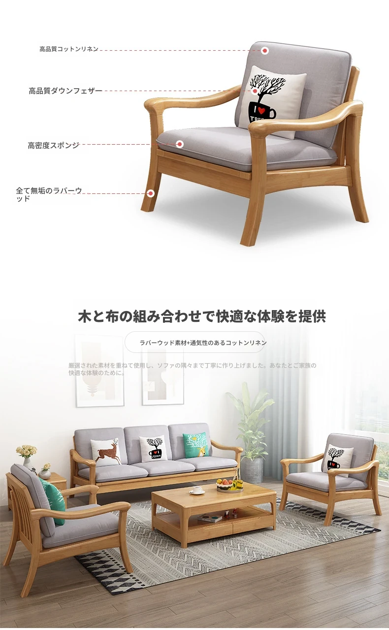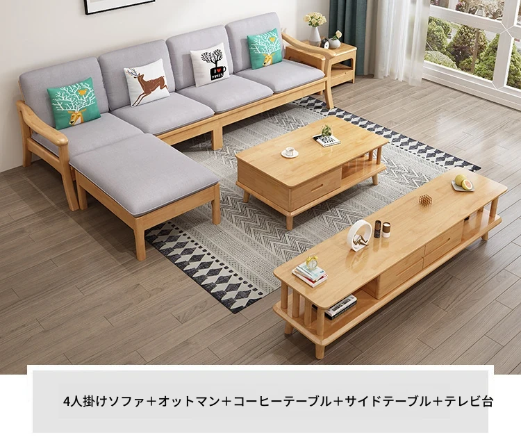 北欧スタイルの無垢材ソファセット - モダンでシンプル、快適な原木製!冬も夏も使えるリビングルーム用コンビネーション。おしゃれな空間を演出しませんか?