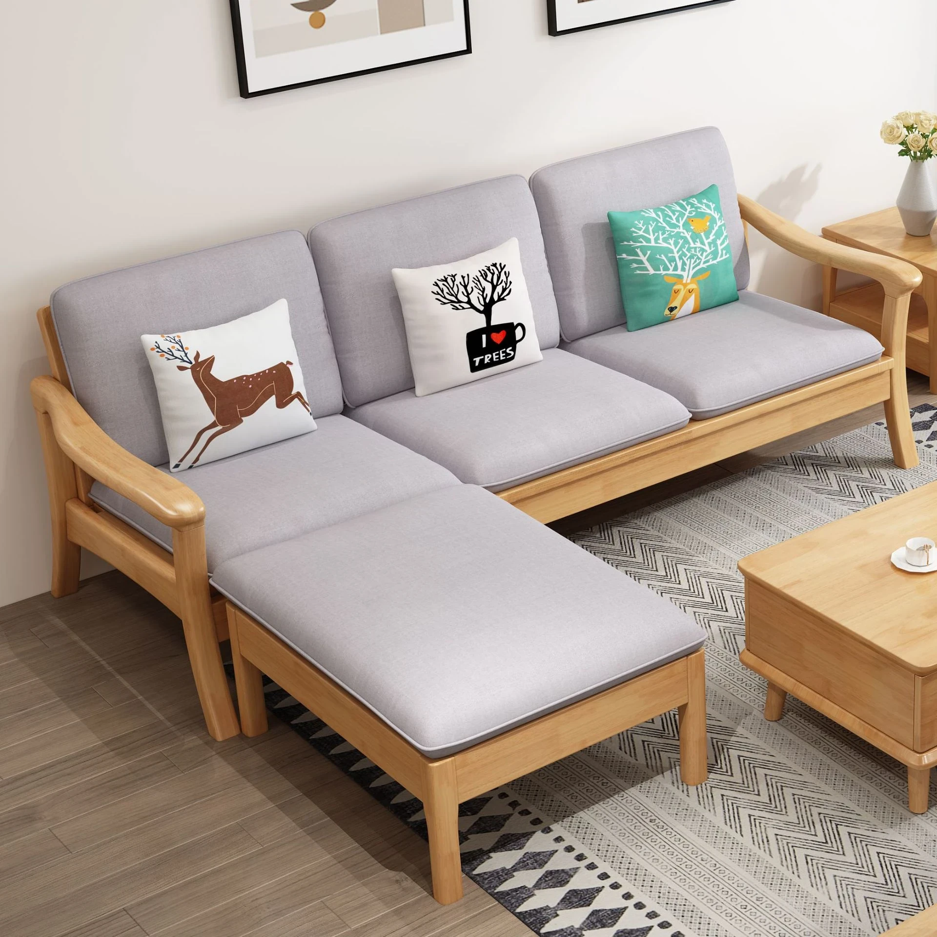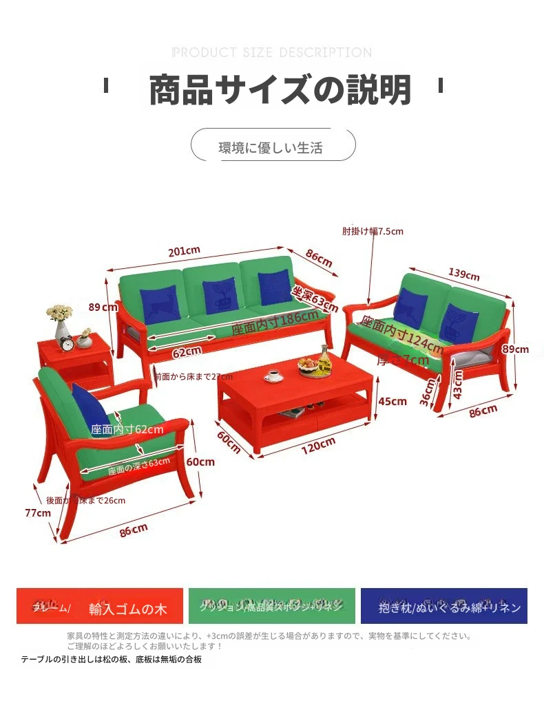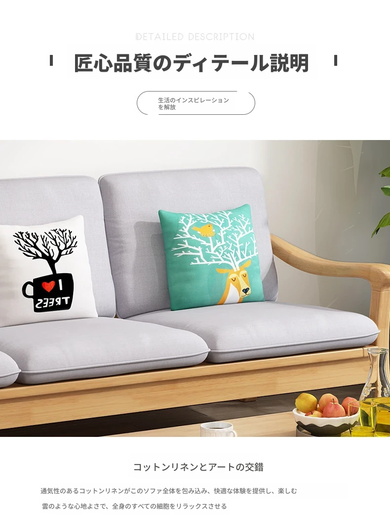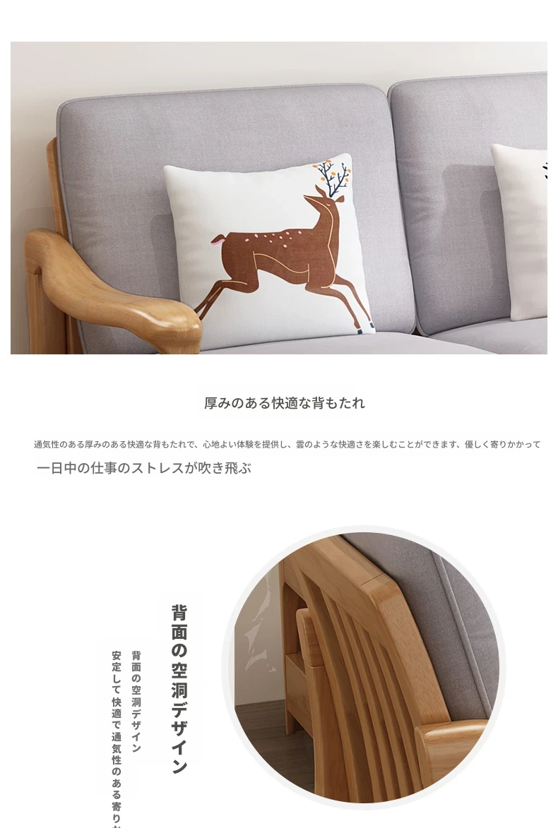 北欧スタイルの無垢材ソファセット - モダンでシンプル、快適な原木製!冬も夏も使えるリビングルーム用コンビネーション。おしゃれな空間を演出しませんか?