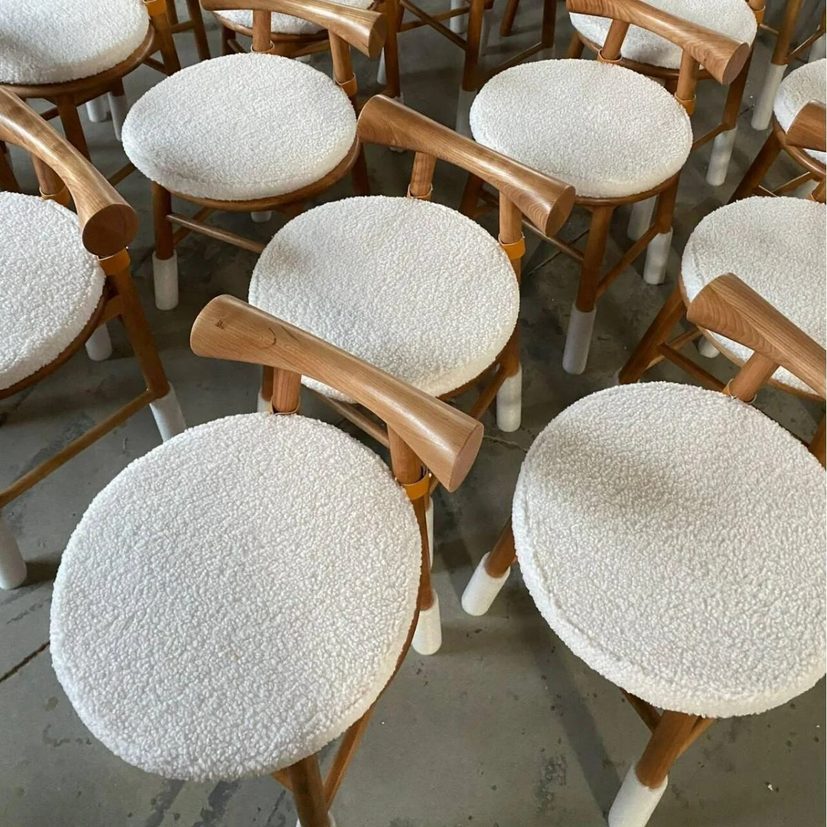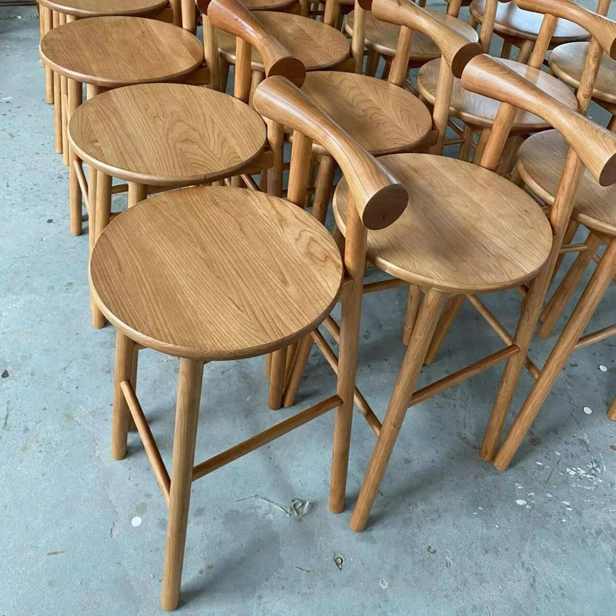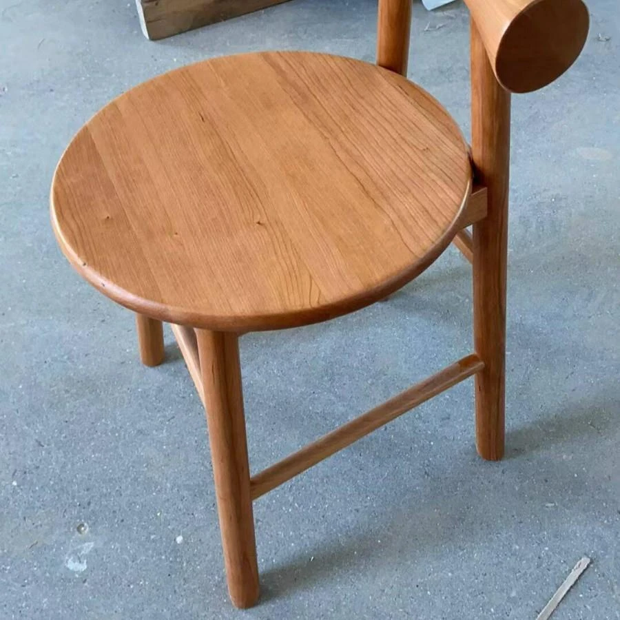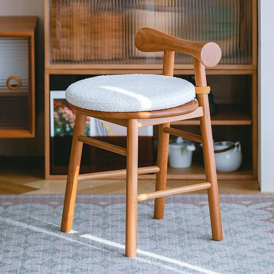 全実木バタフライスツール - 家庭用の高品質なチェリーウッド製、背もたれ付きの化粧椅子。おしゃれで快適なデザインで、あなたのビューティータイムを彩ります!
