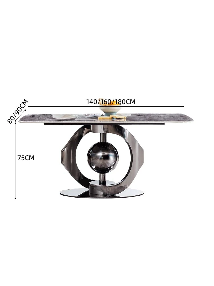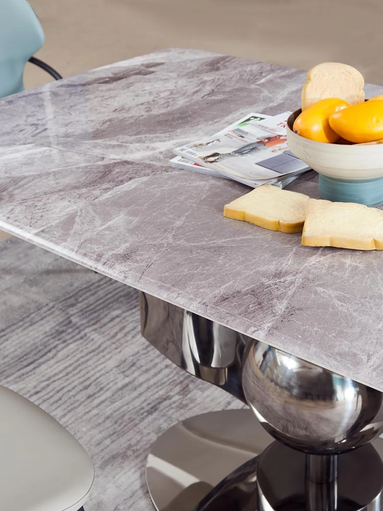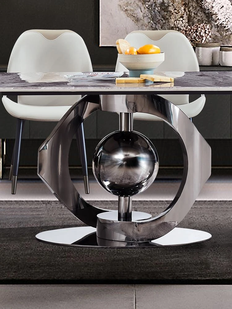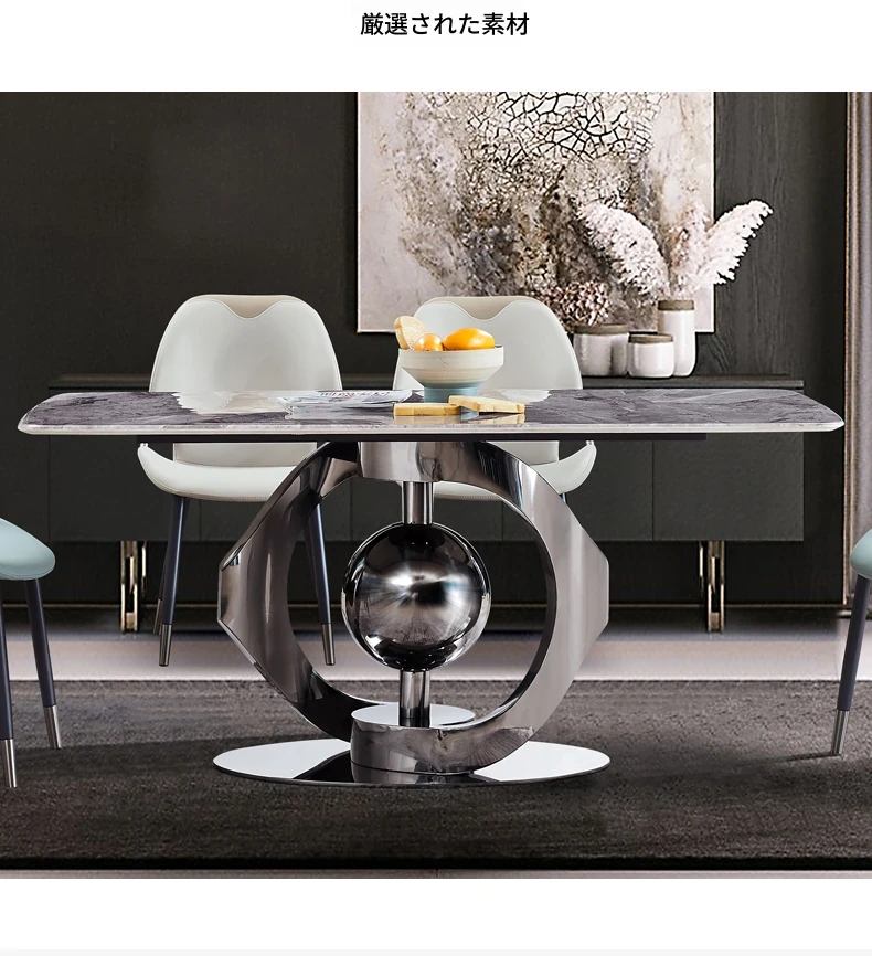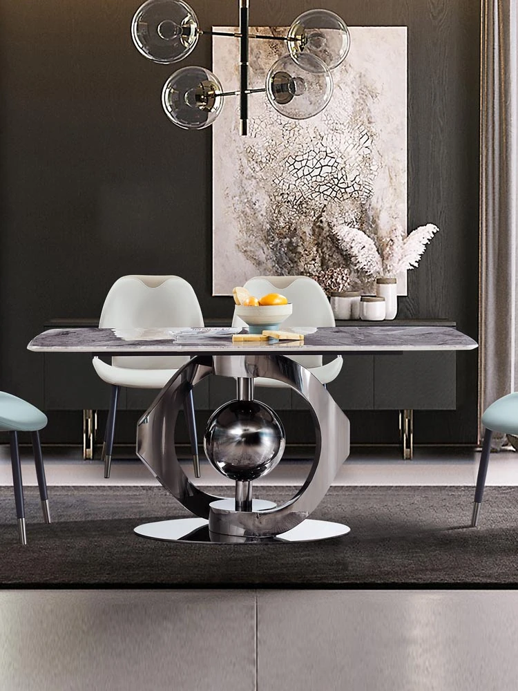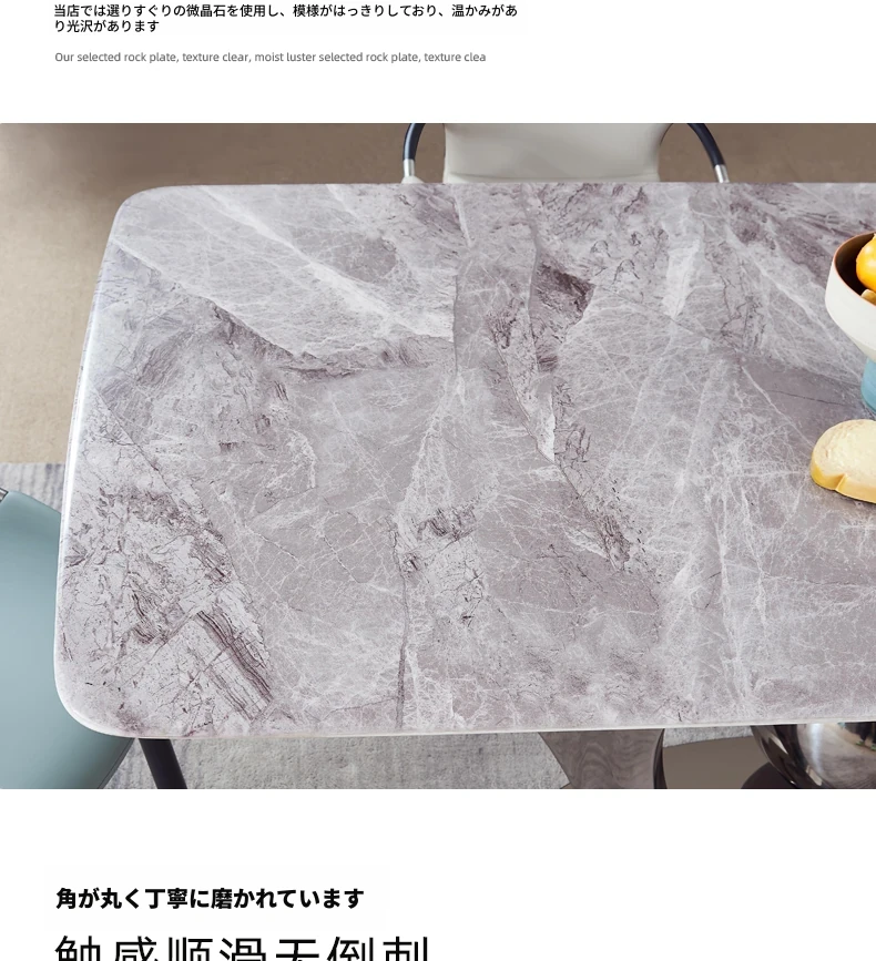 ステンレス製の軽奢華モダンミニマリストダイニングテーブル - 小さなスペースにもぴったりな長方形のテーブル、マイクロクリスタル石材仕上げで高級感を演出。食事をもっと特別に!