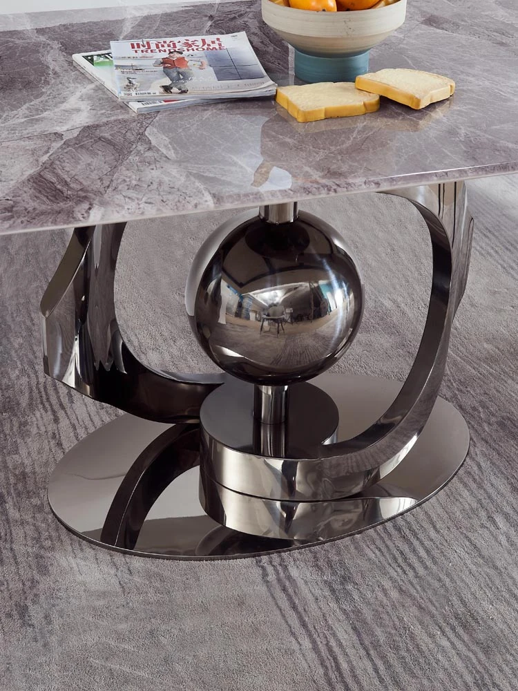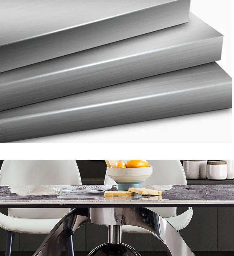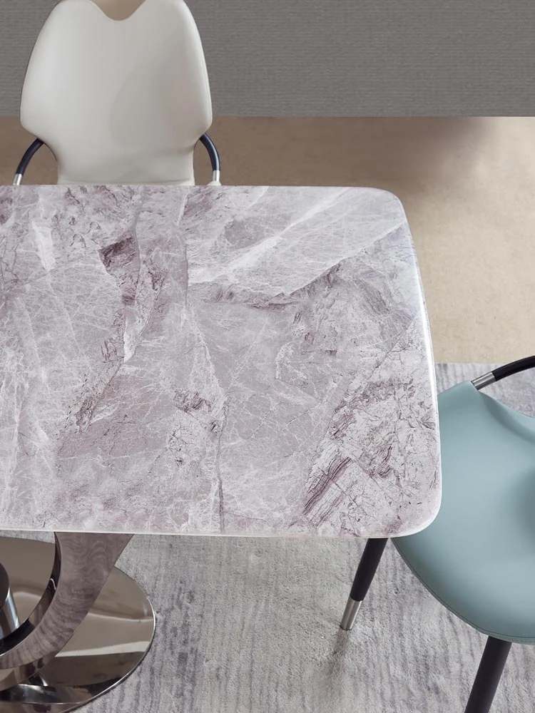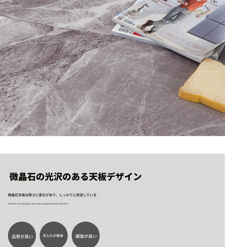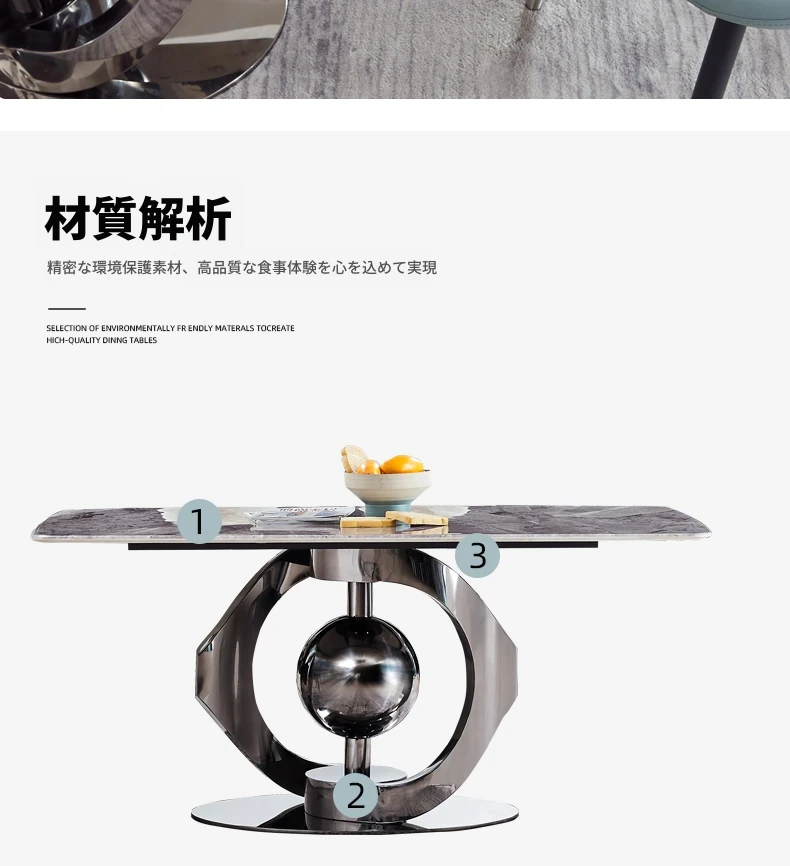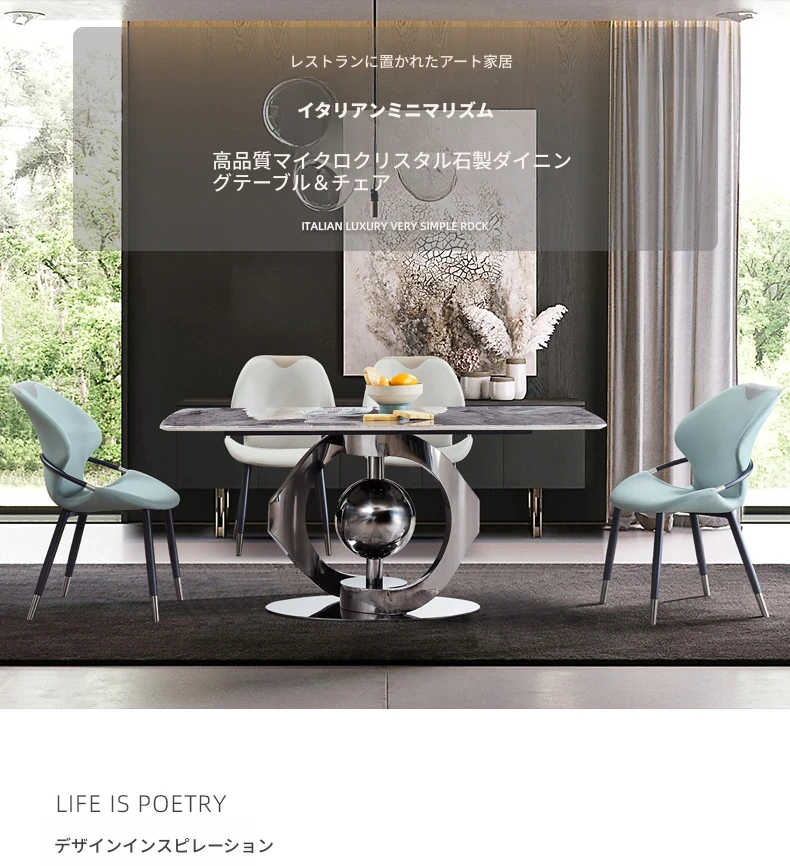 ステンレス製の軽奢華モダンミニマリストダイニングテーブル - 小さなスペースにもぴったりな長方形のテーブル、マイクロクリスタル石材仕上げで高級感を演出。食事をもっと特別に!