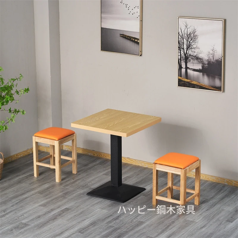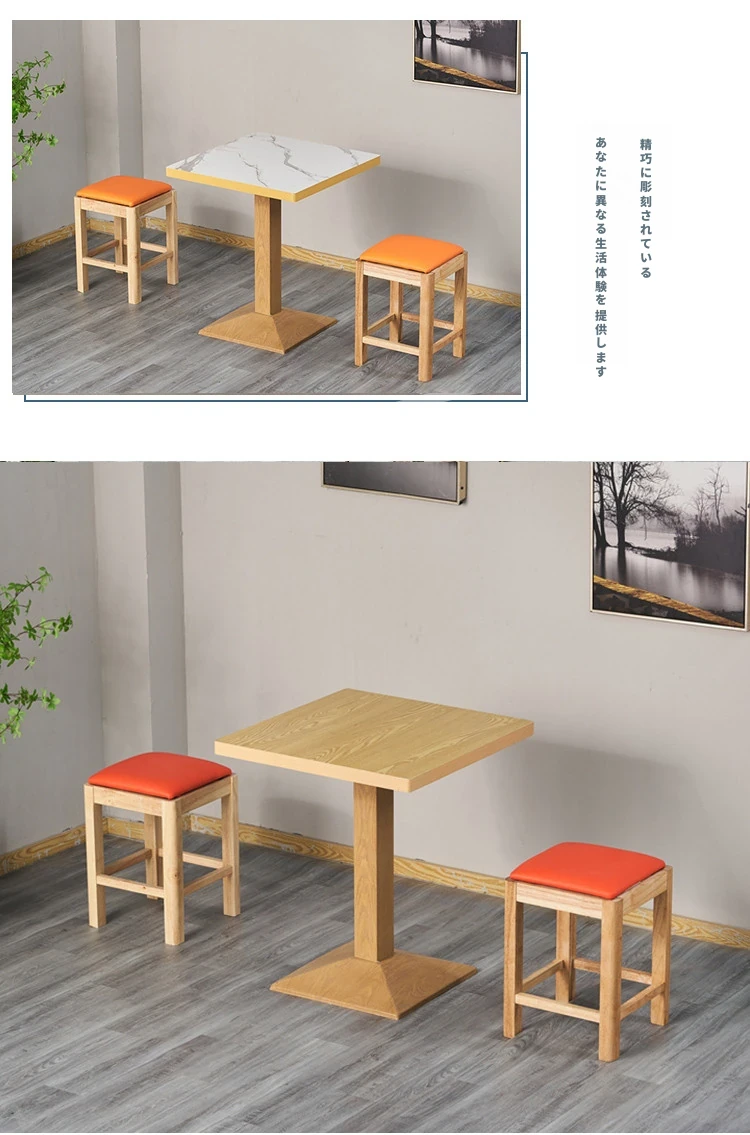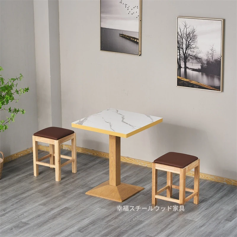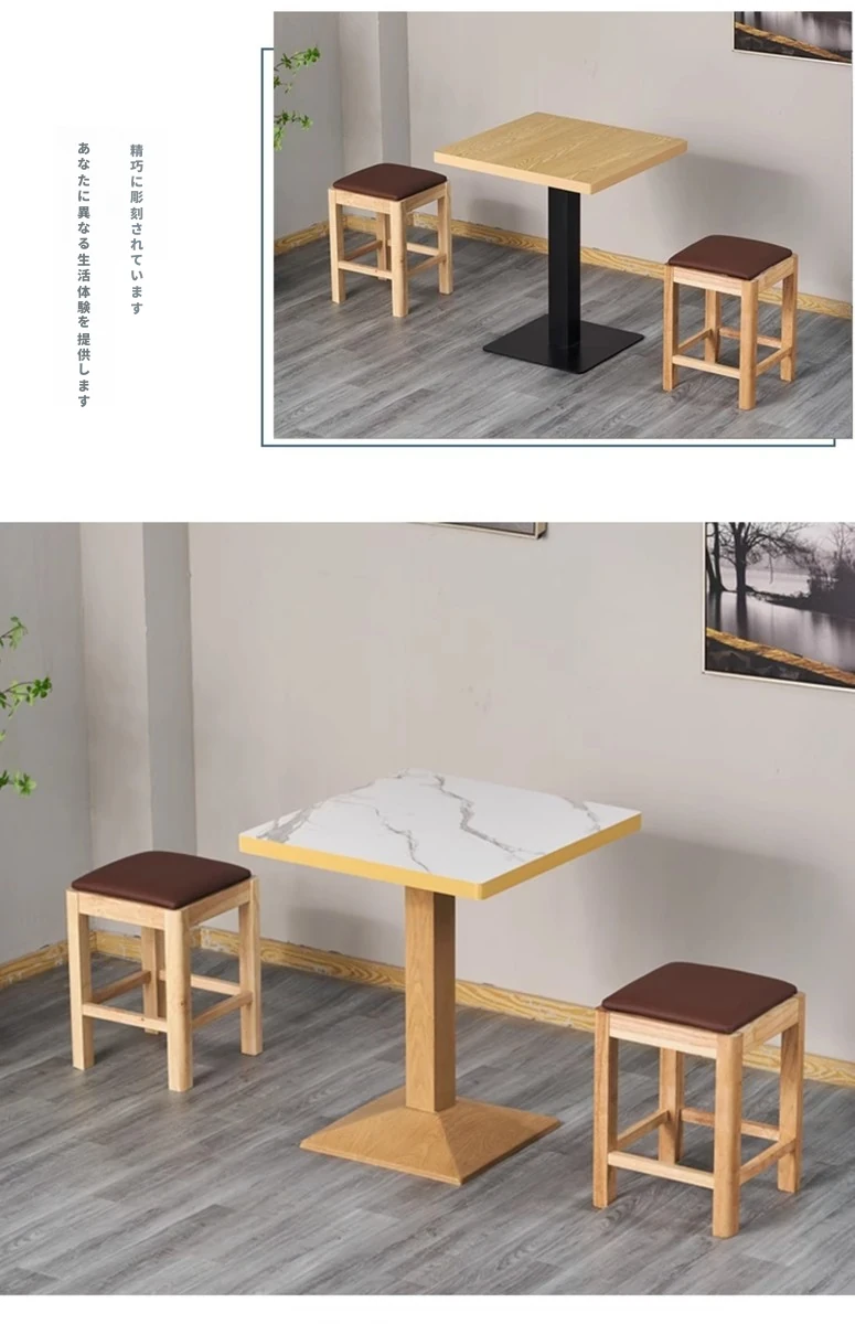 人気の麻辣烫ファーストフード、ハンバーガー、寿司、餃子、麺料理、カフェスタイルの小さなタピオカティーショップに最適な板木のテーブル&チェアセット!おしゃれな空間を演出し、集客力アップを実現します!