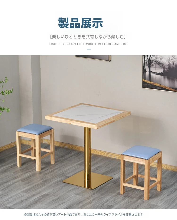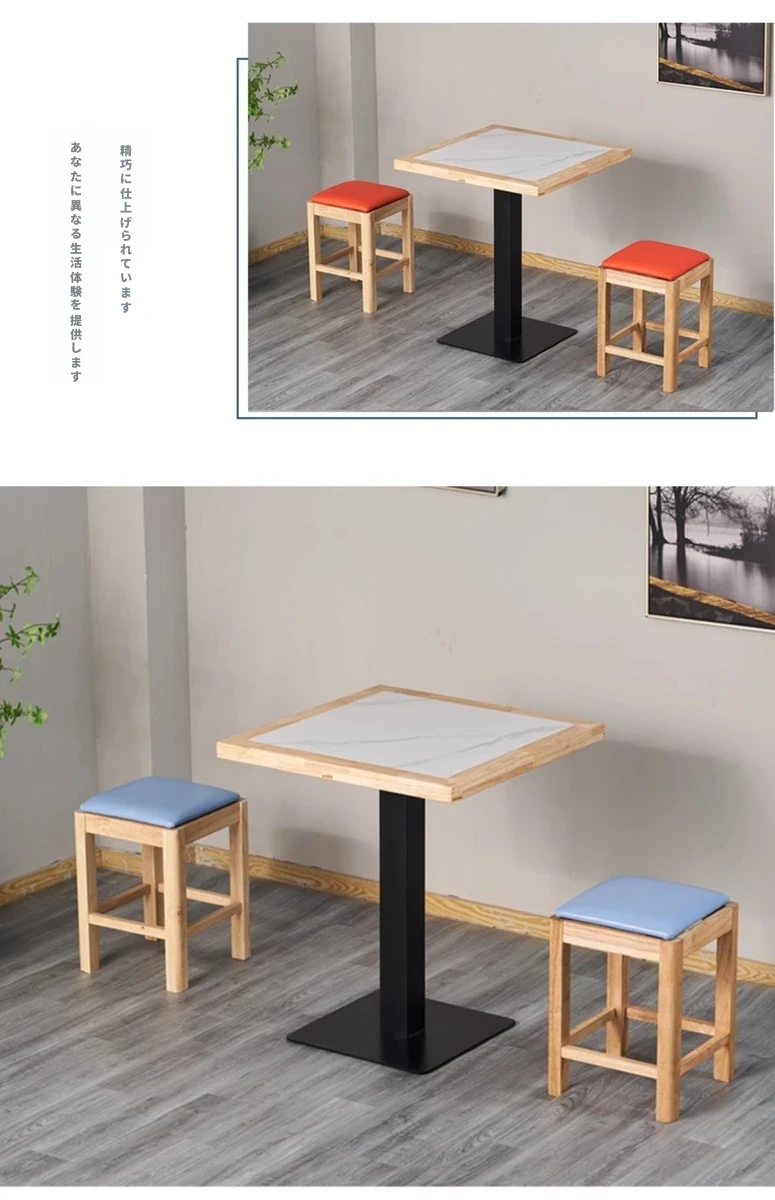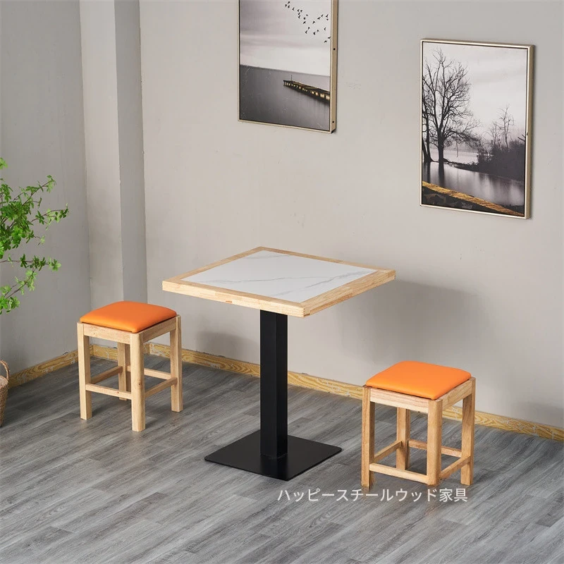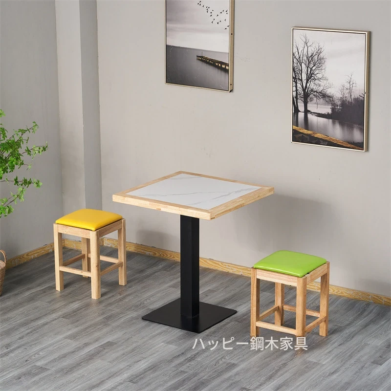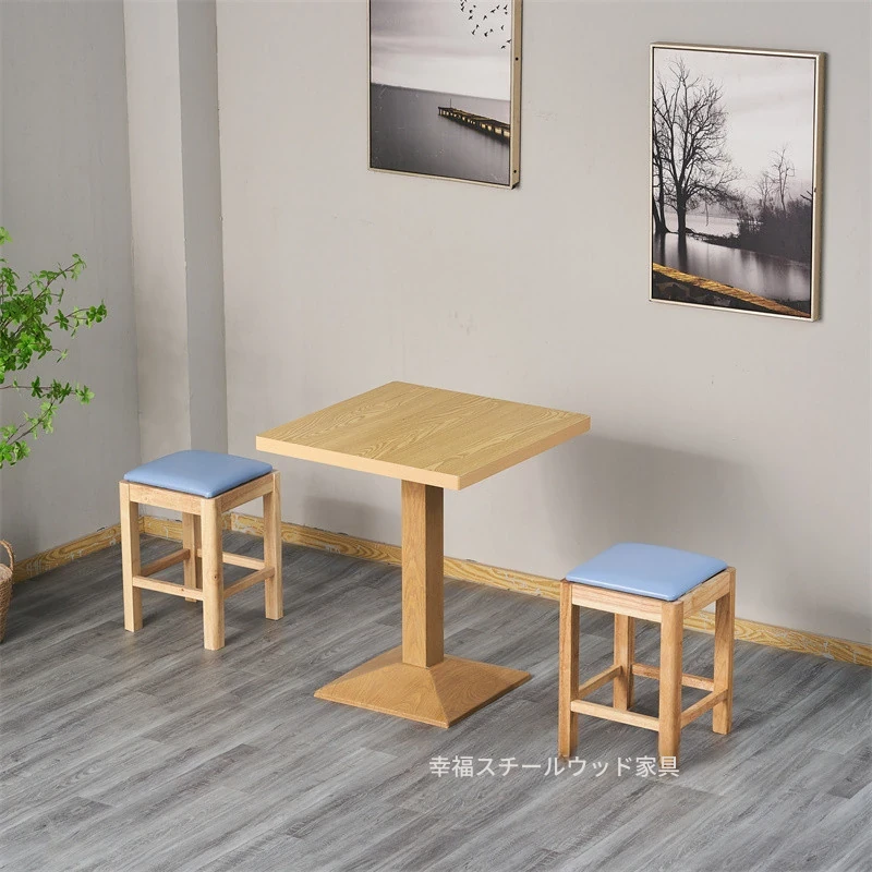 人気の麻辣烫ファーストフード、ハンバーガー、寿司、餃子、麺料理、カフェスタイルの小さなタピオカティーショップに最適な板木のテーブル&チェアセット!おしゃれな空間を演出し、集客力アップを実現します!