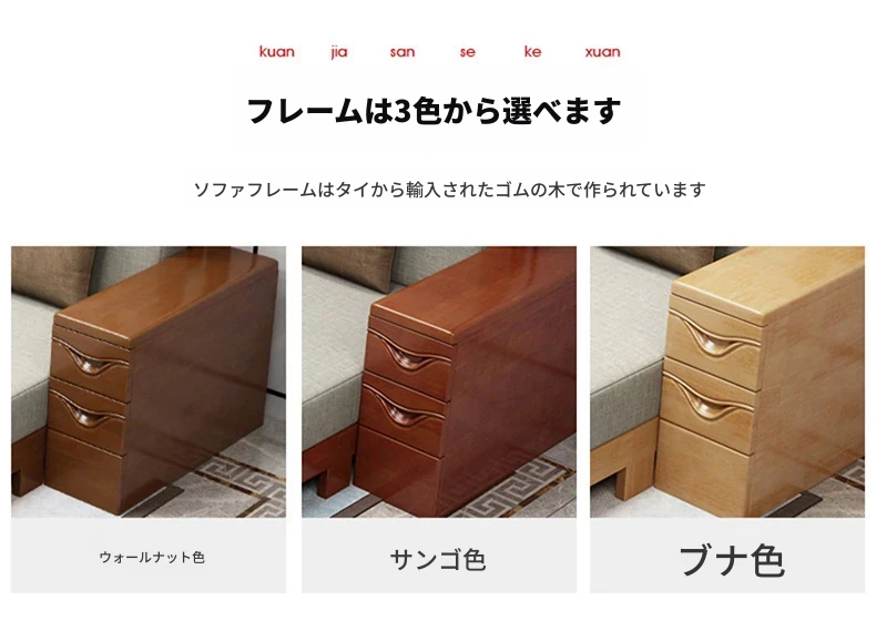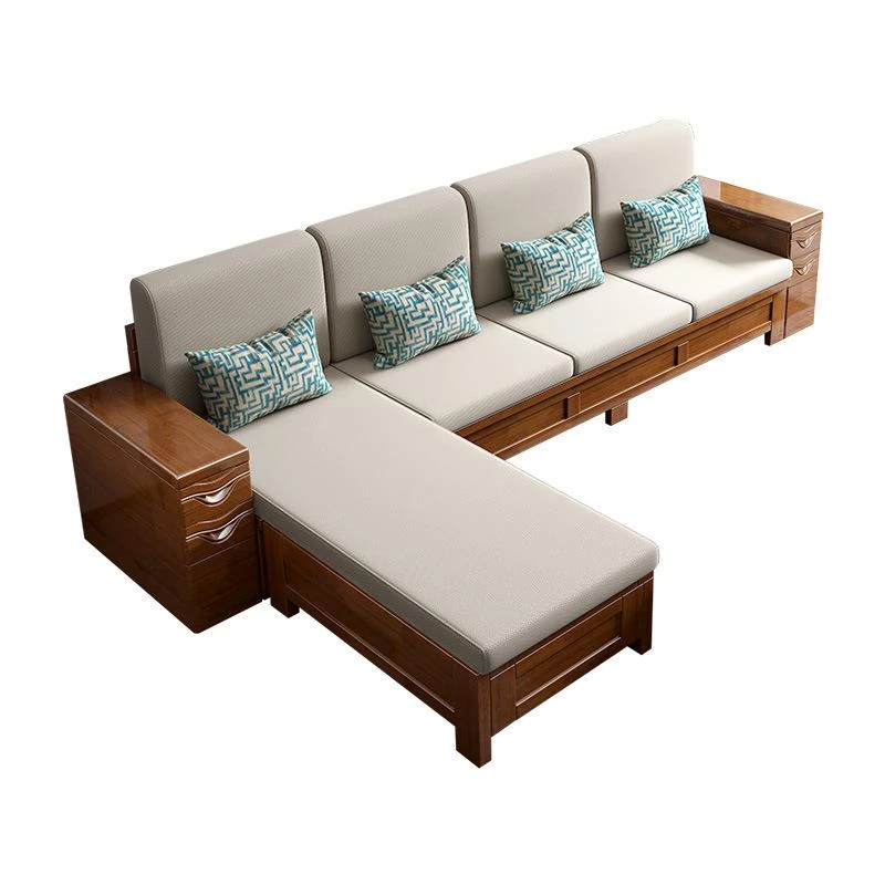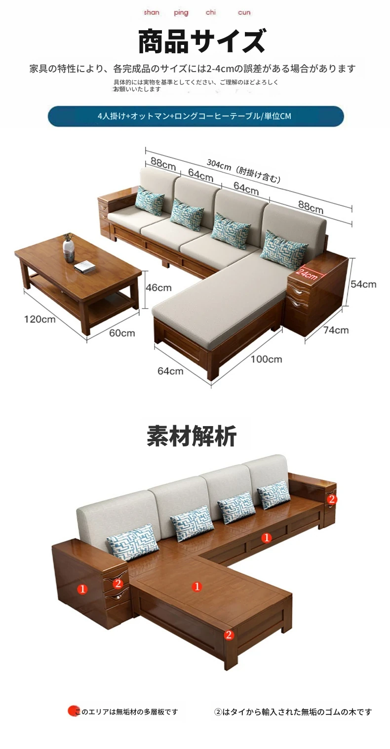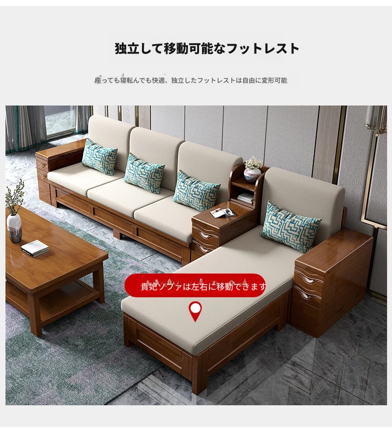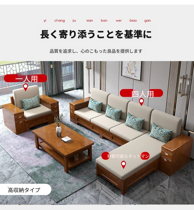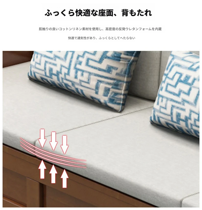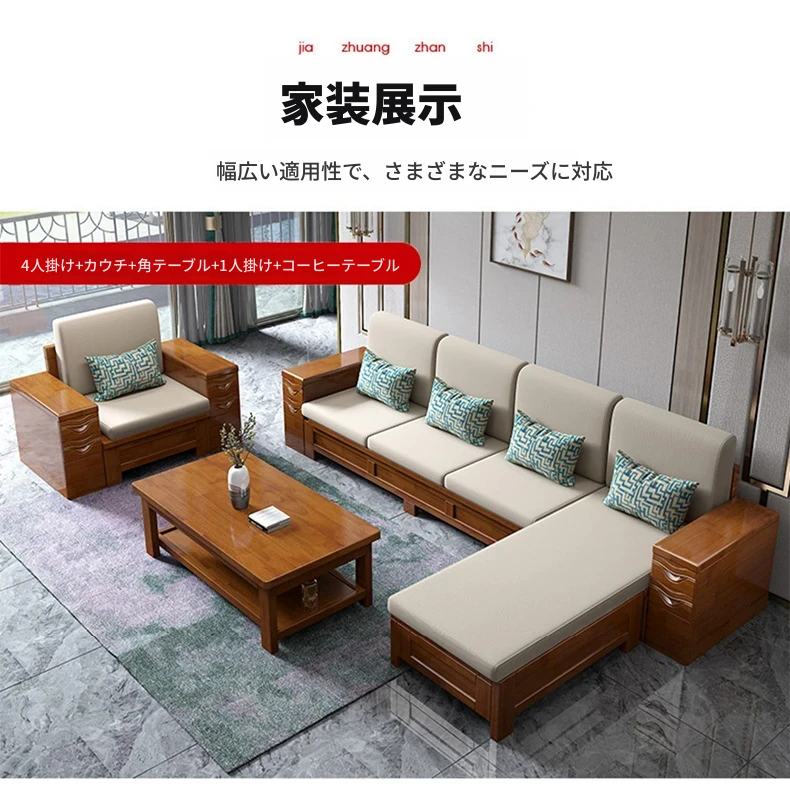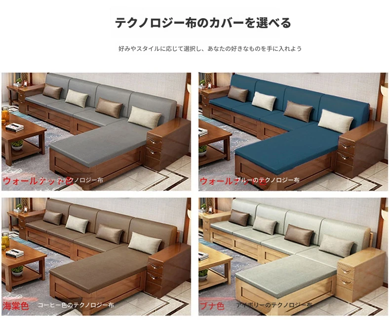 冬夏兼用!実木ソファーセット - 小型住宅に最適な新中式現代デザイン、収納力抜群の高箱付き木製家具で、快適なリビング空間を実現!
