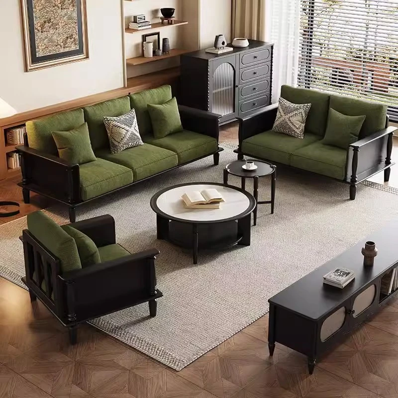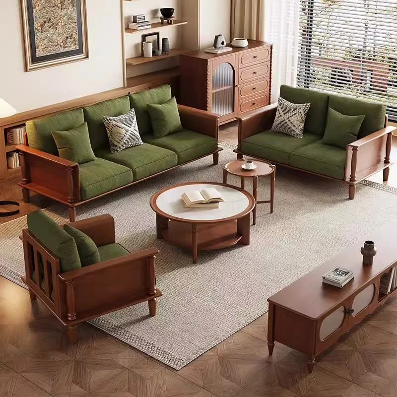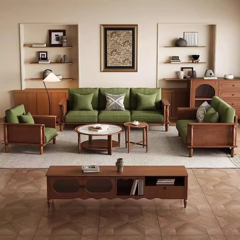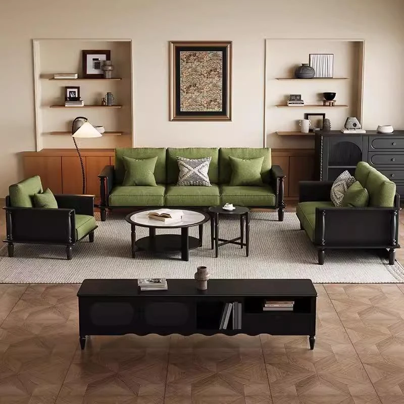2024年新款!复古风格实木云朵沙发,适合小户型的客厅,欧美风格,清新奶油色调,优雅绿色布艺,带来温馨舒适的家居体验!