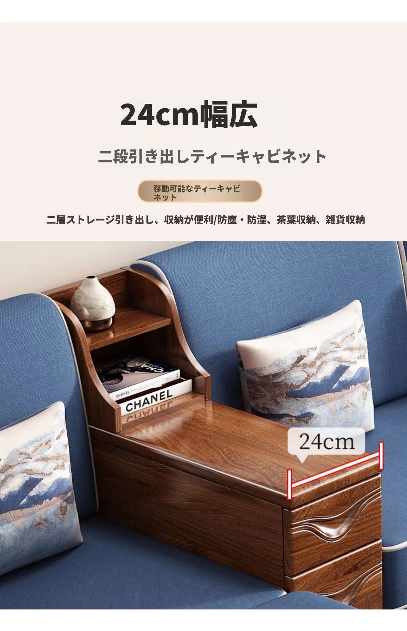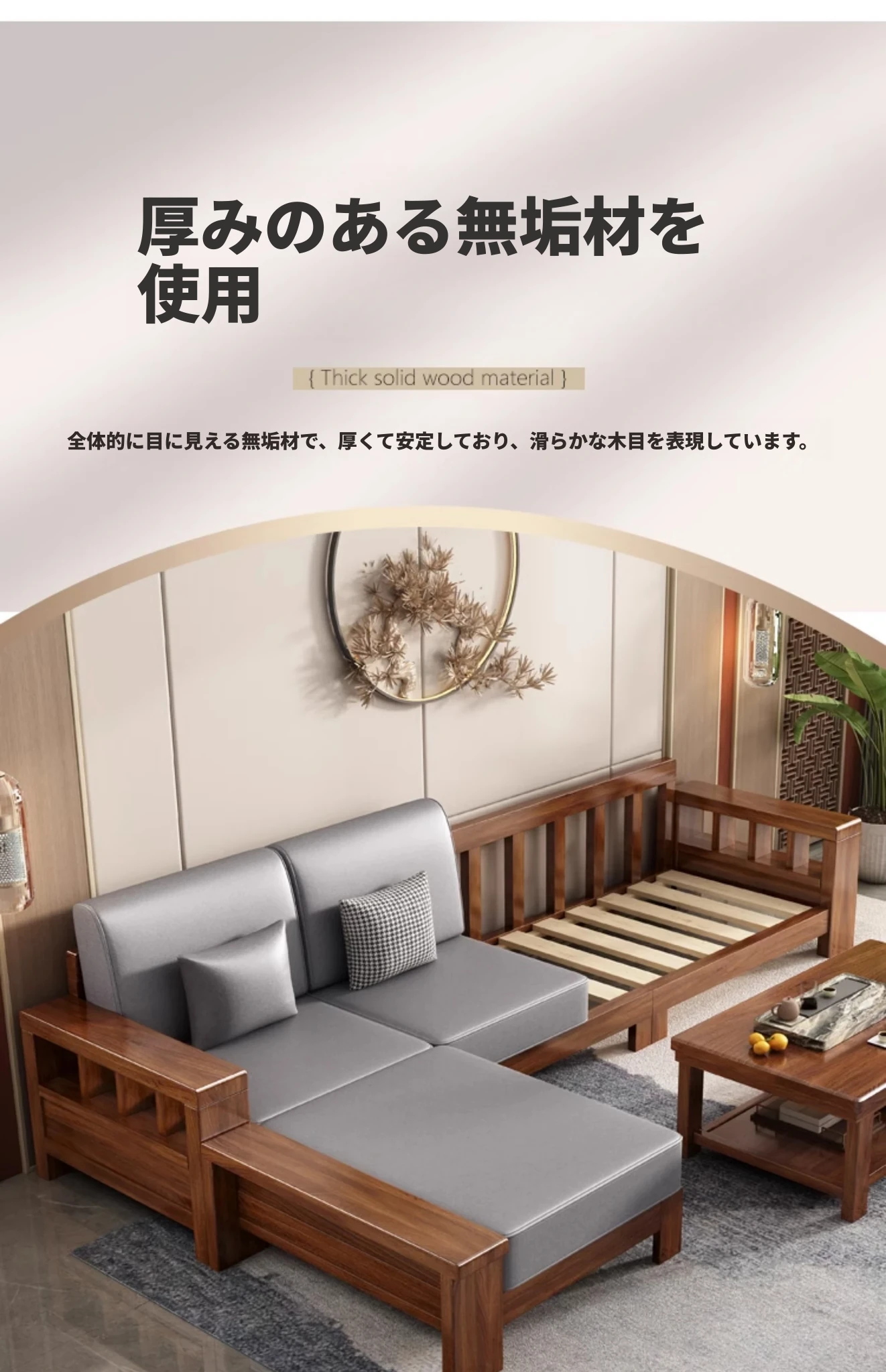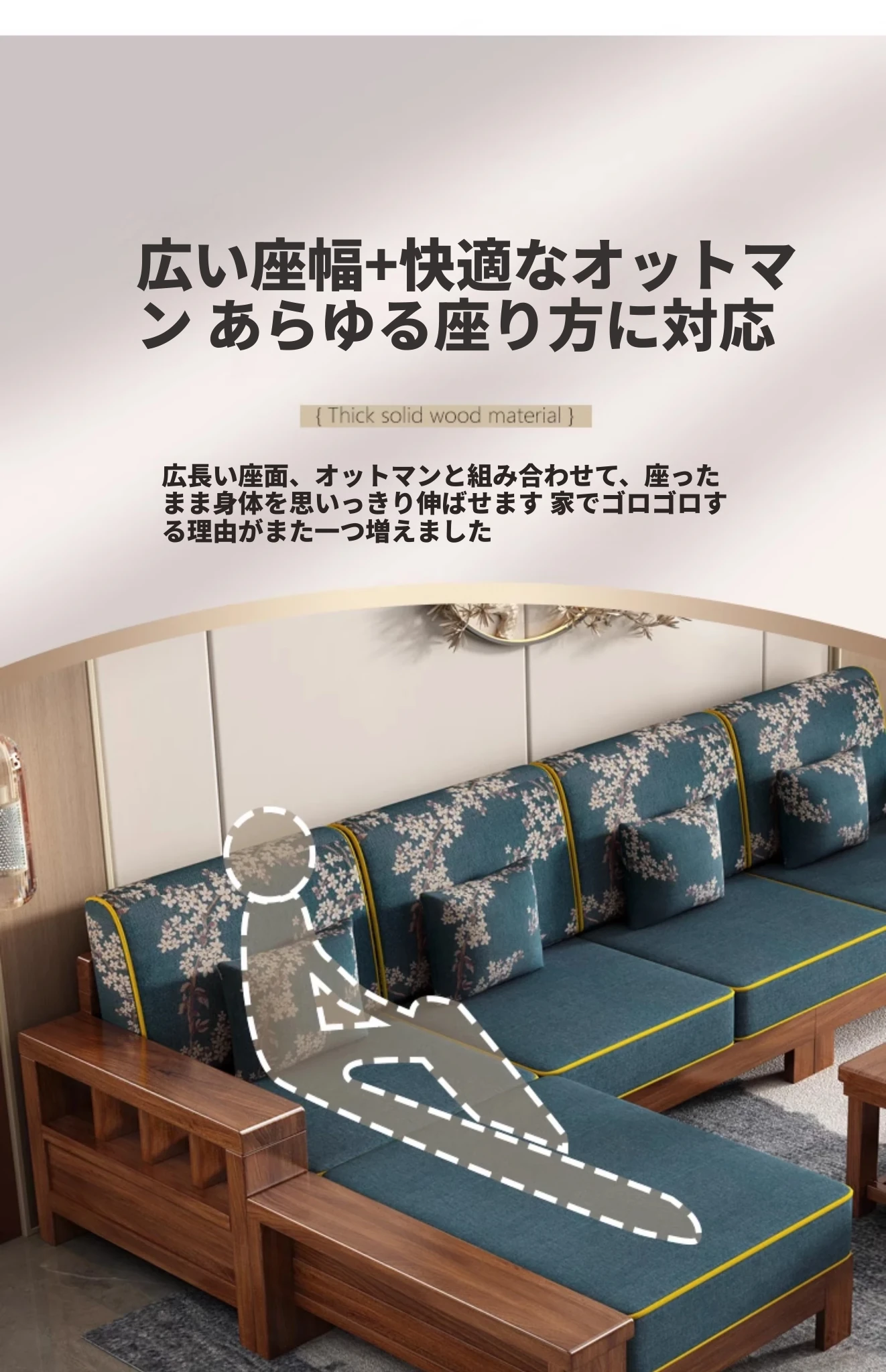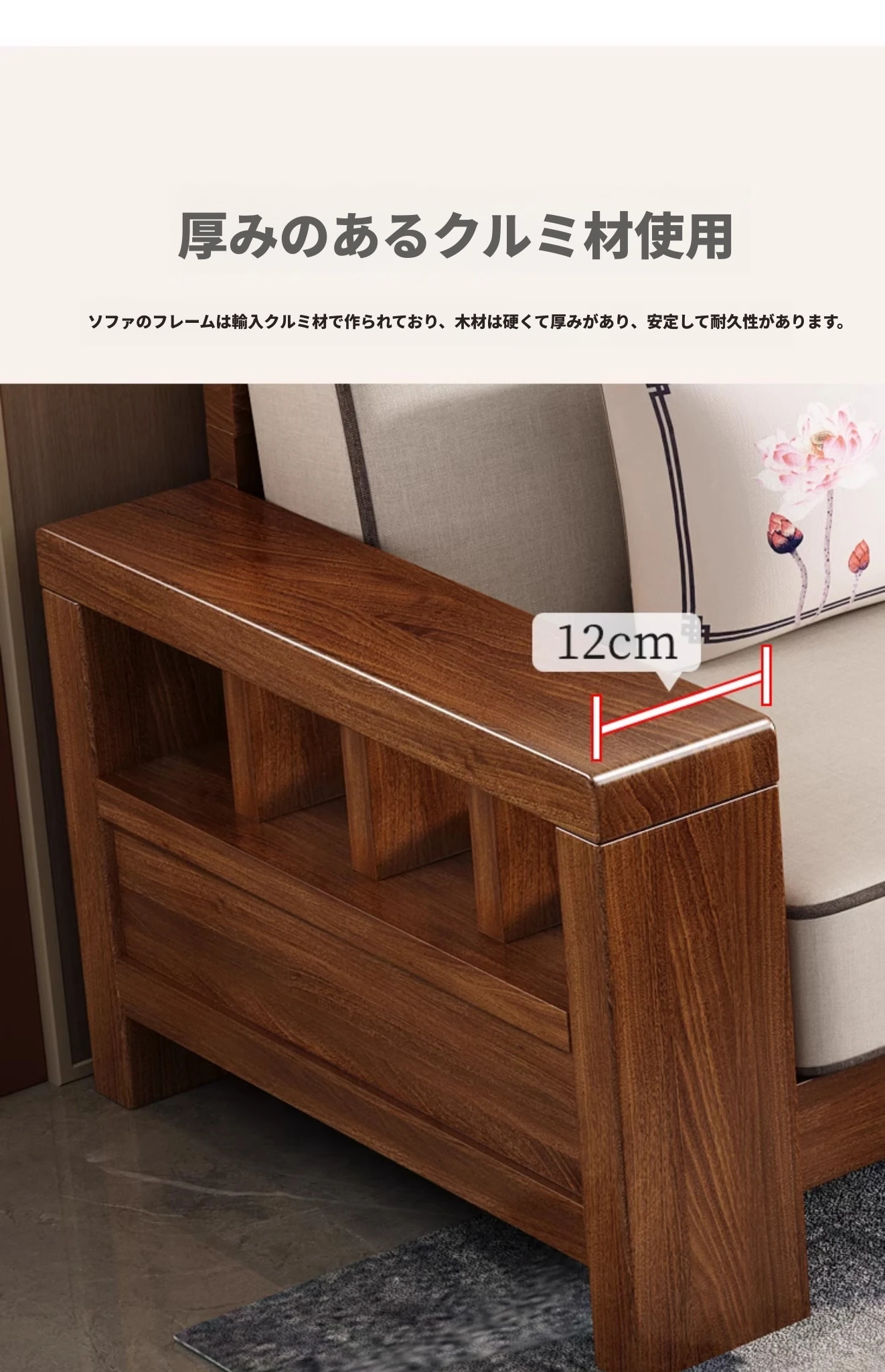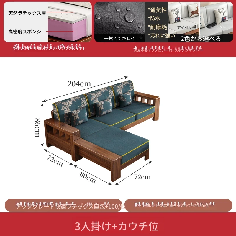 胡桃無垢材ソファセットY908|中華風シンプルモダンリビングにぴったり!3人掛け木製ファブリックソファ、小型アパートにも最適なスタイリッシュなデザイン!