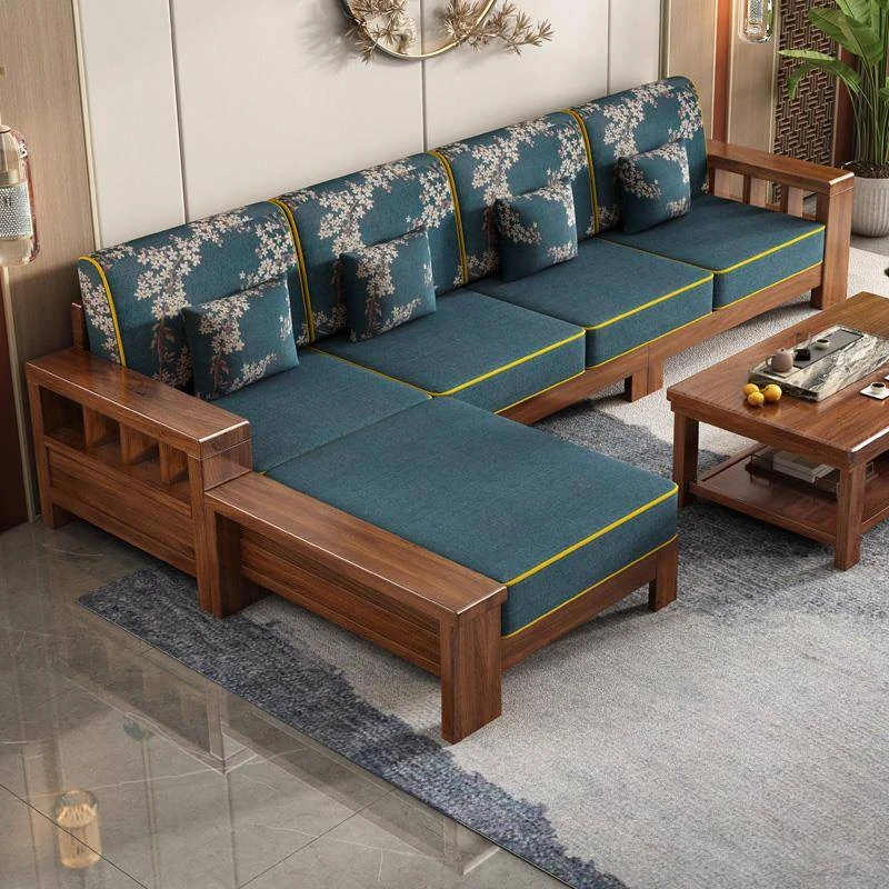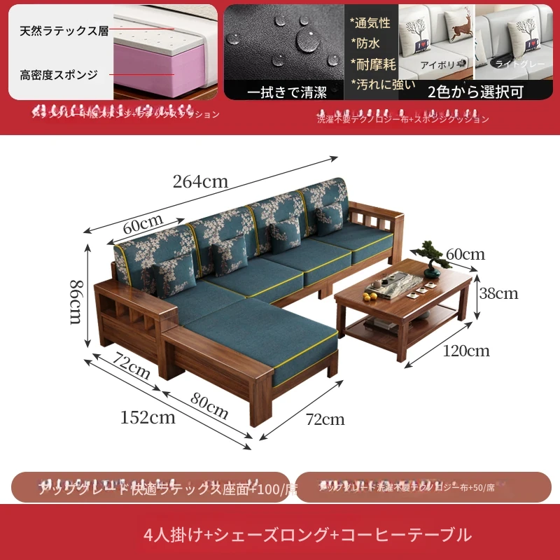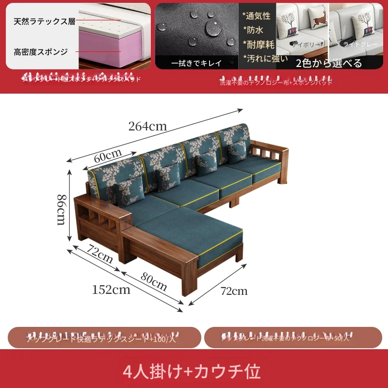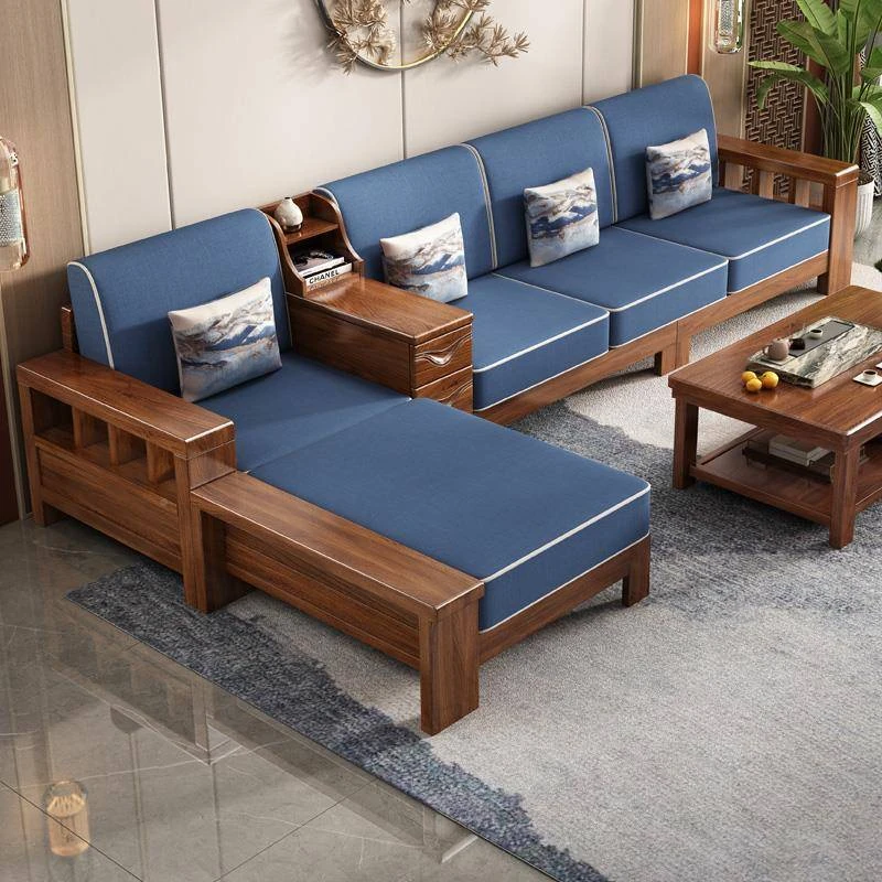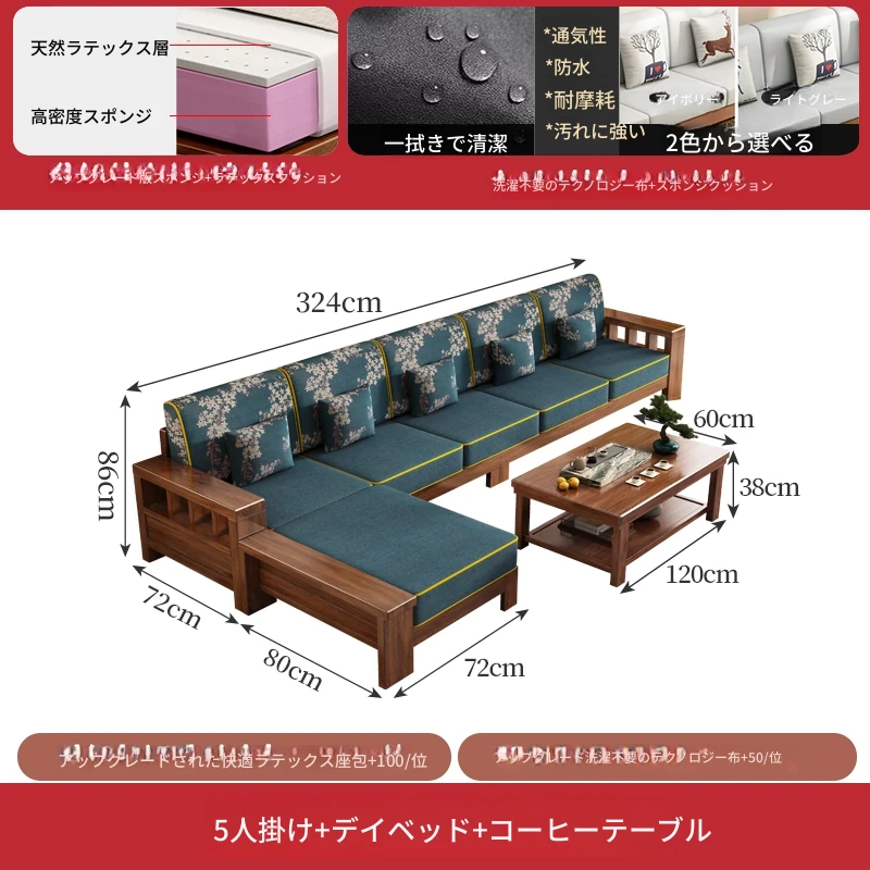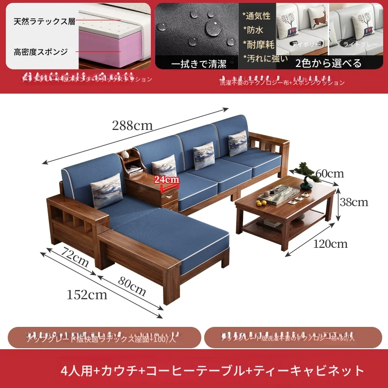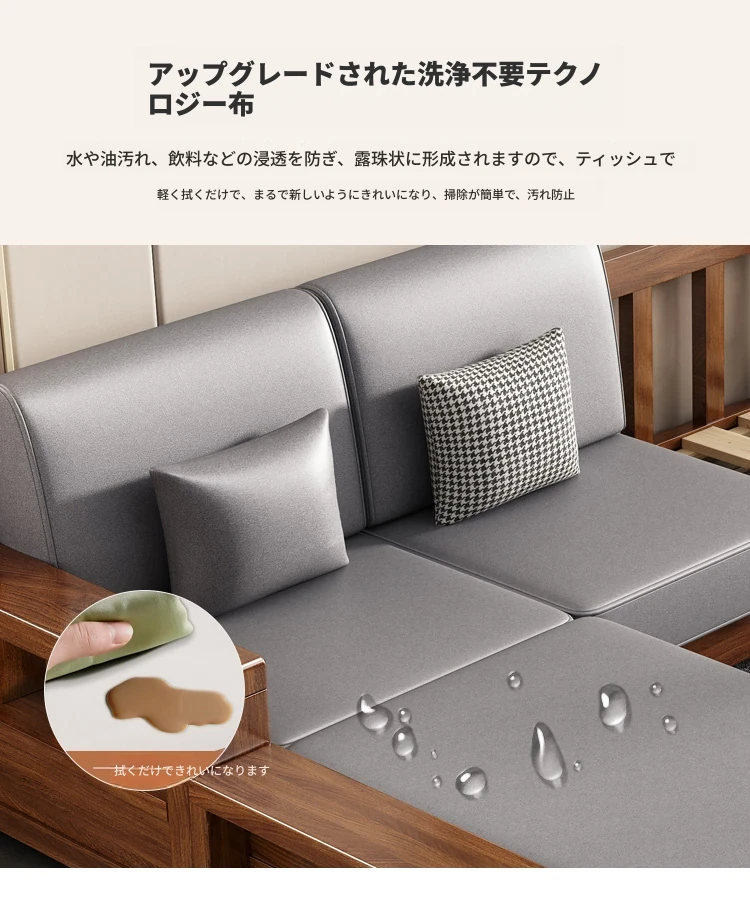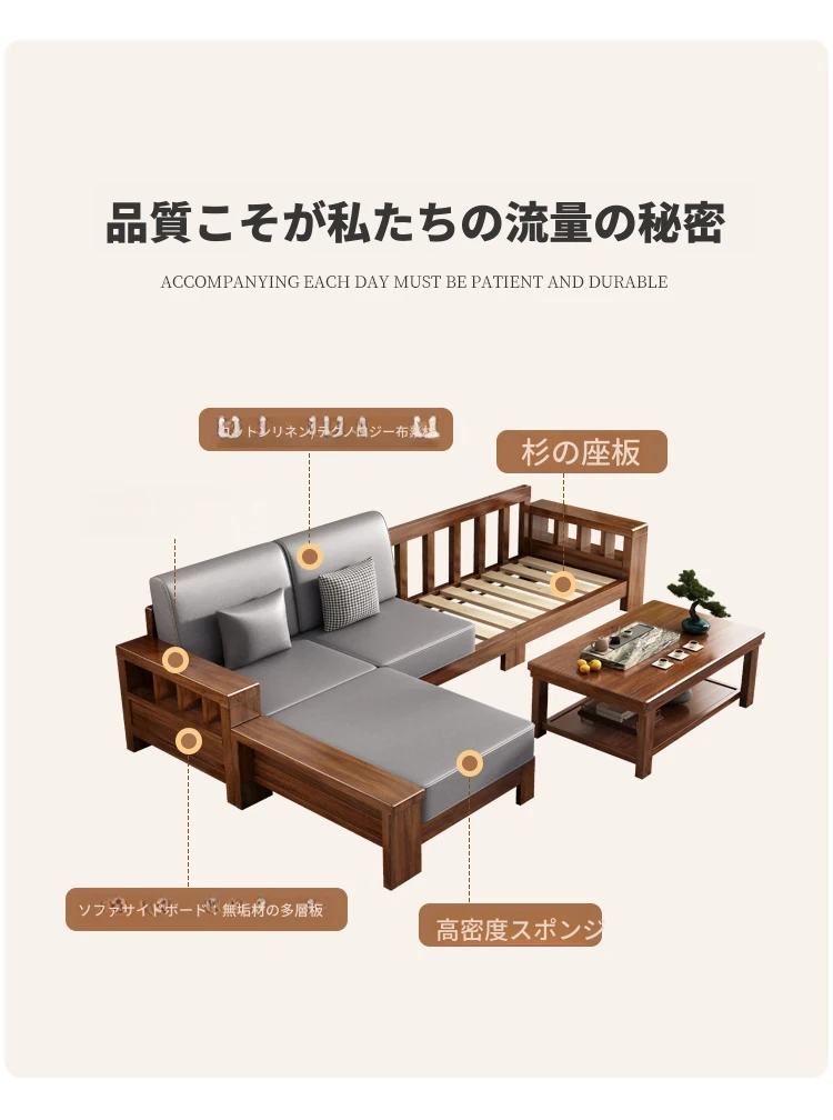 胡桃無垢材ソファセットY908|中華風シンプルモダンリビングにぴったり!3人掛け木製ファブリックソファ、小型アパートにも最適なスタイリッシュなデザイン!