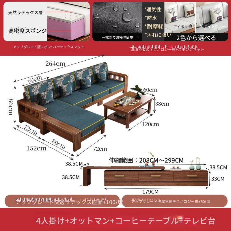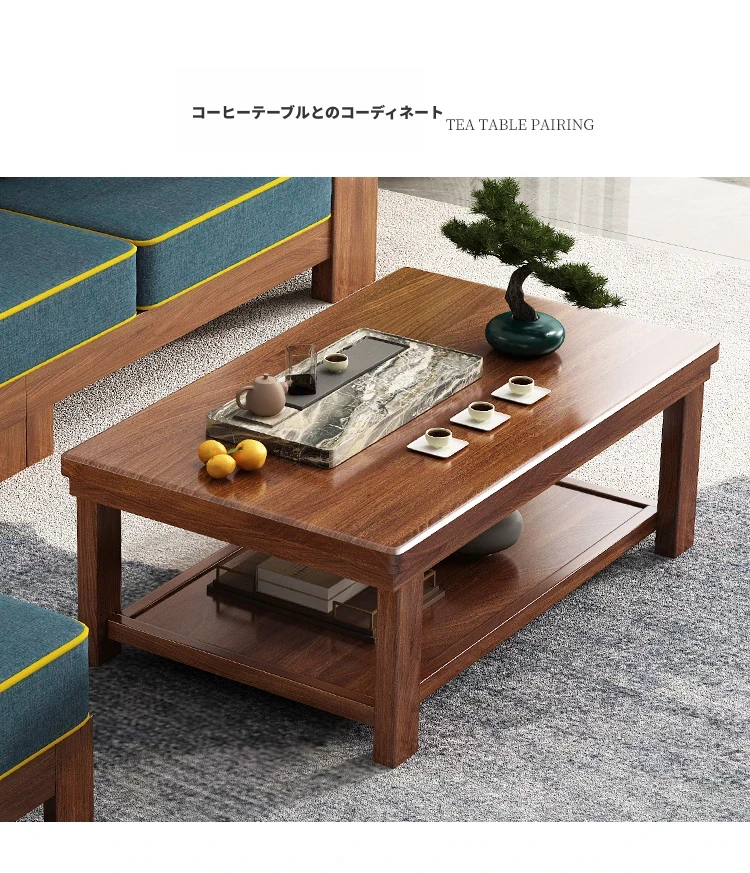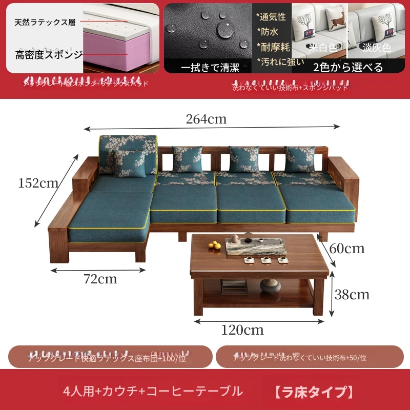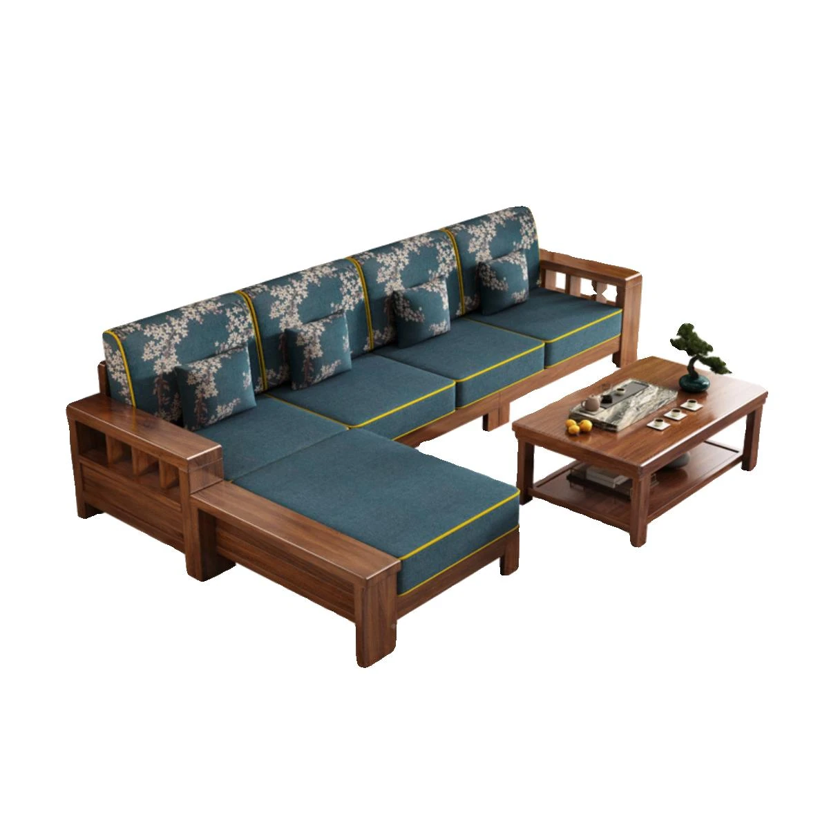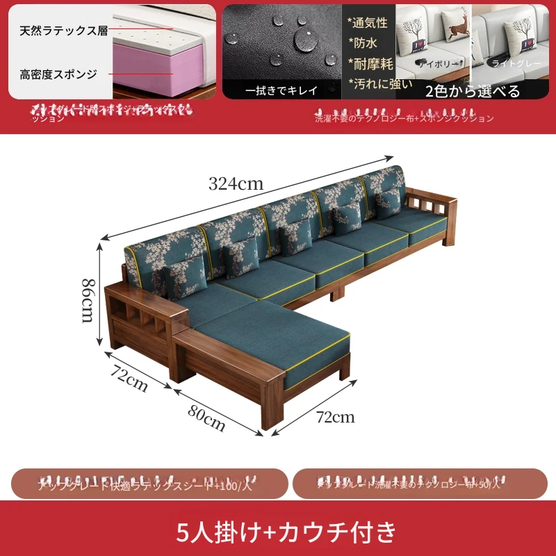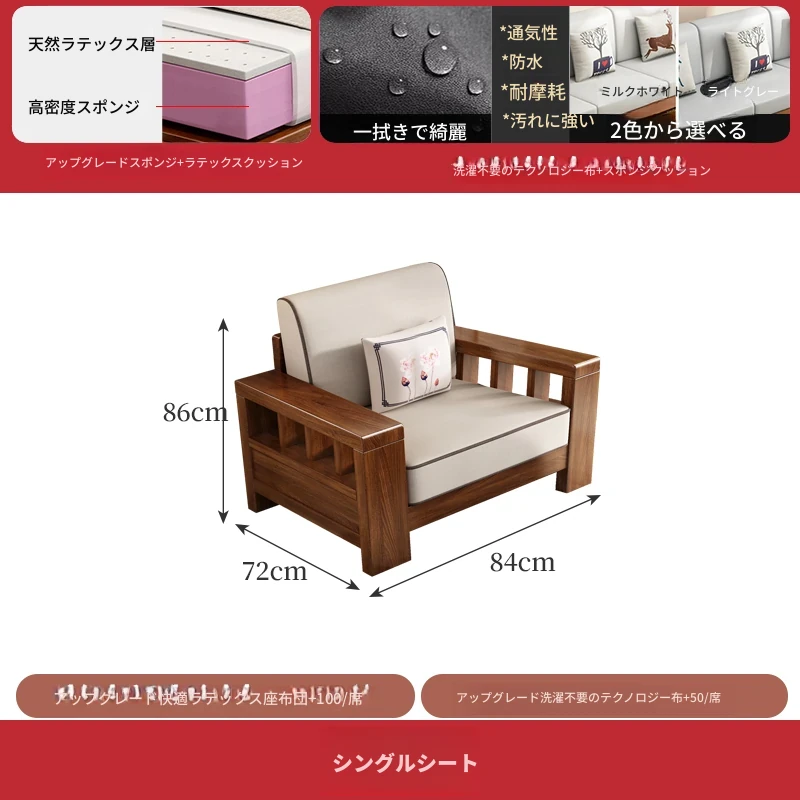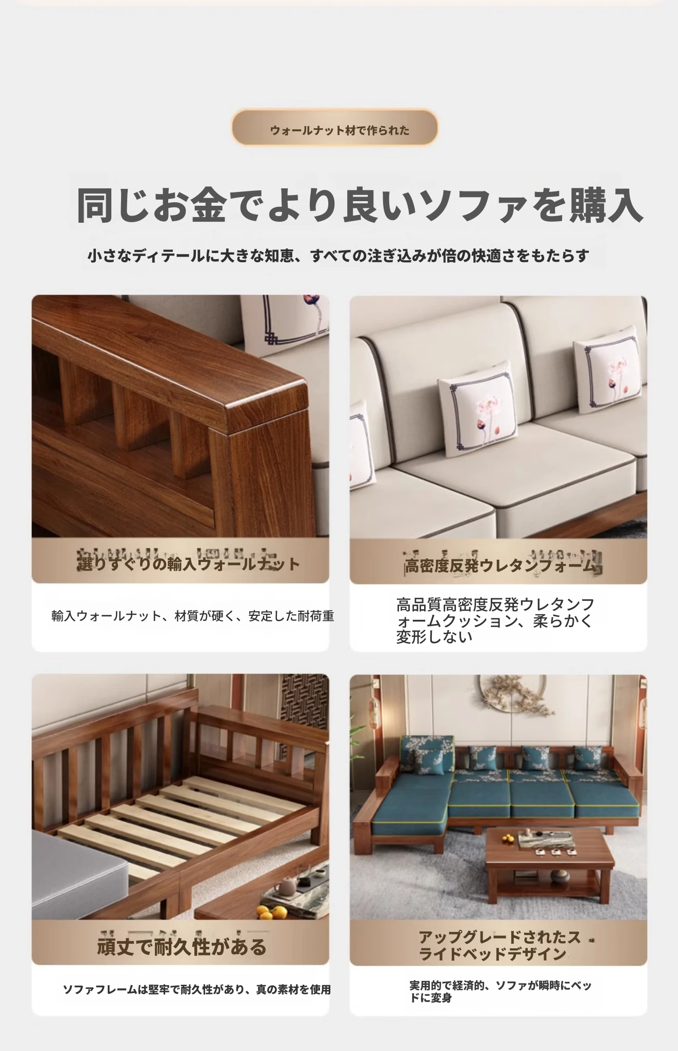 胡桃無垢材ソファセットY908|中華風シンプルモダンリビングにぴったり!3人掛け木製ファブリックソファ、小型アパートにも最適なスタイリッシュなデザイン!